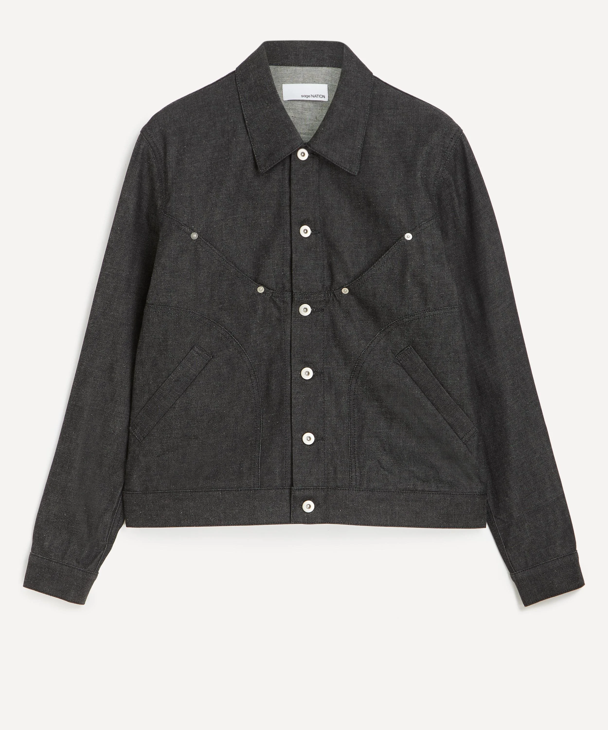 DETAILS Denim trucker jacket Cropped, relaxed fit Curved panelling Button closure with metal buttons Two inseam chest pockets Side entry pockets Made in Japan SIZE & FIT Model is 186cm/6'1"; Chest: 92cm; Waist: 71cm and wears a size M COMPOSITION & CARE 100% Cotton Dry clean