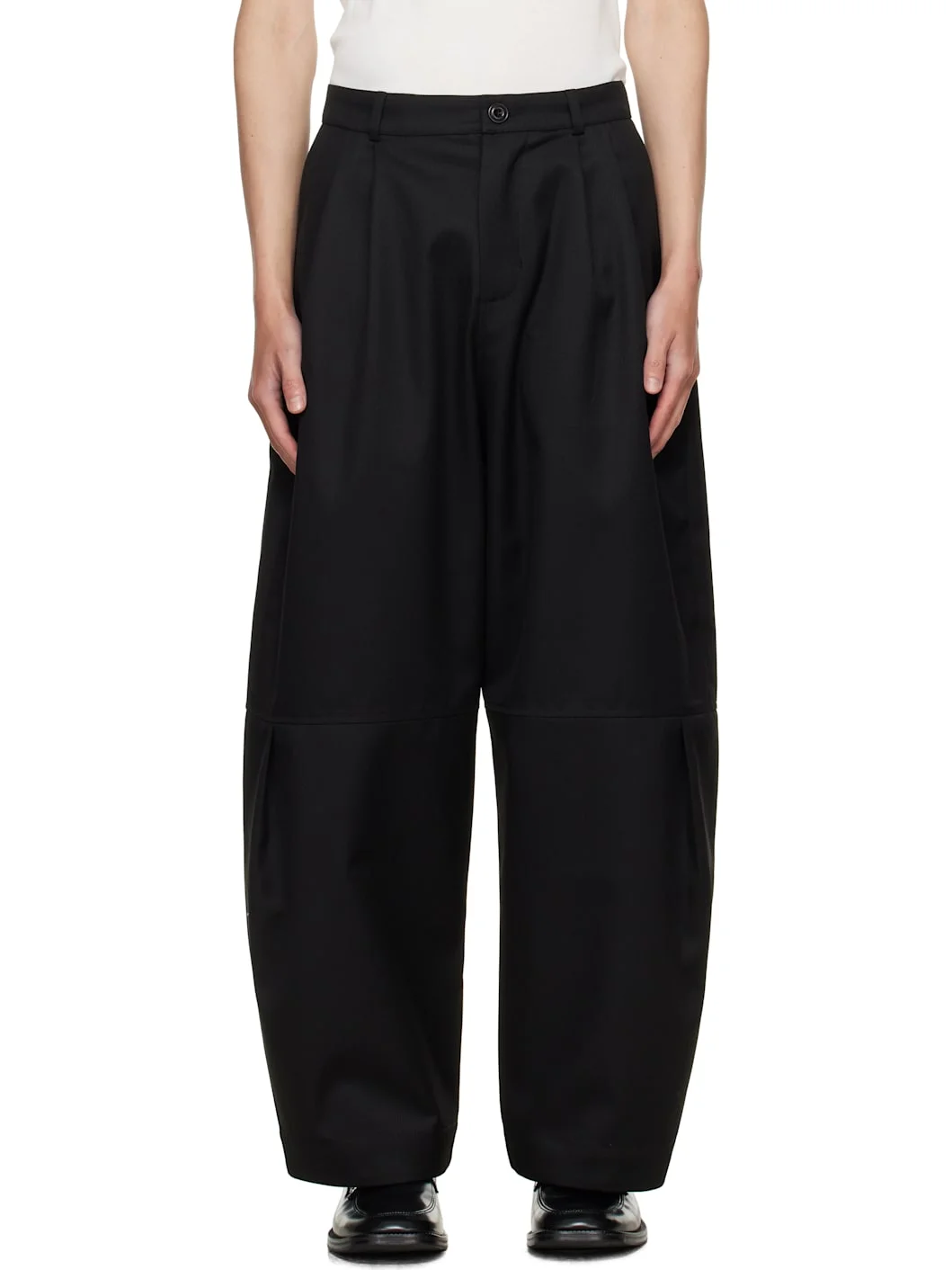 Cotton twill trousers. · Wide-leg · Belt loops · Four-pocket styling · Zip fly · Pleats at front Supplier color: Black 100% cotton. Made in United Kingdom 252654M191007