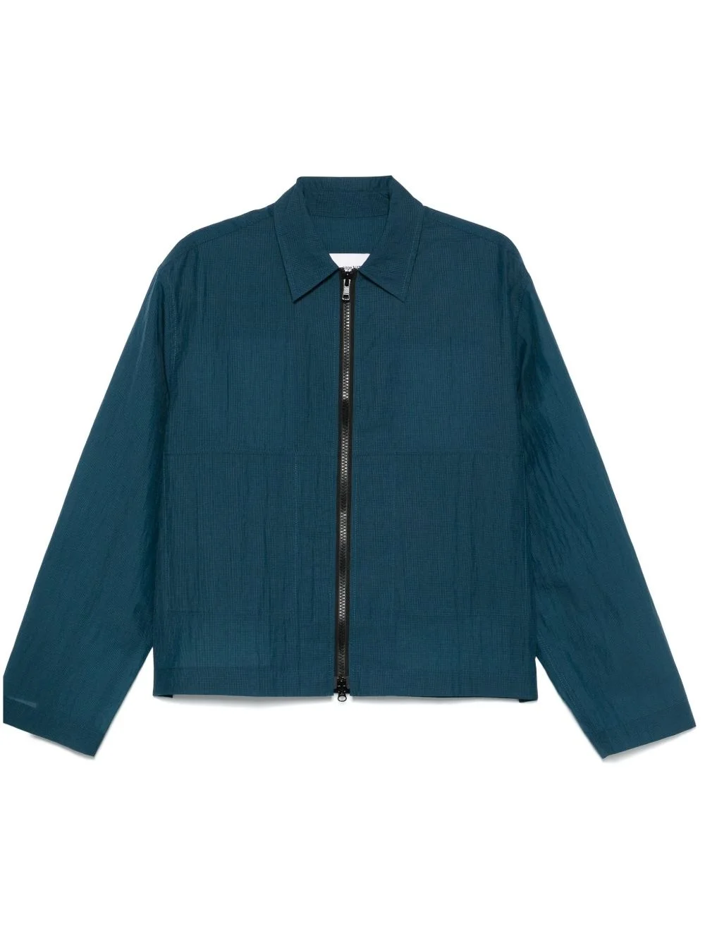ripstop jacket Highlights - Ocean blue - Front two-way zip fastening - Internal patch pockets - Classic collar - Long sleeves Made in United Kingdom Composition Recycled Nylon 57%, Cotton 26%, Polyester 17% SIZE & FIT Model measurements Height 6 ft 1 in(1.85 m) Bust/Chest 38.58 in(98 cm) Hips 37 in(94 cm) Waist 30.31 in(77 cm) FittingInformation Designed for a boxy fit, intended for a loose fit throughout Made from a lightweight non-stretch fabric