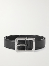 SAINT LAURENT's belt is made from full-grain black leather that'll soften nicely over time. The silver-tone buckle has an antiqued finish and is subtly engraved with the label's logo. Size & Fit - Fits true to size. Take your normal size - Model is shown wearing a 90 - Model measures: waist size 32 Details & Care - Black full-grain leather (Calf) - Silver-tone buckle fastening - Comes with a dust bag