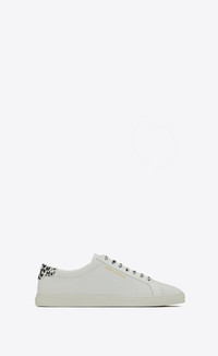 LOW-TOP LACED SNEAKERS WITH GOLD-TONE SAINT LAURENT SIGNATURE ON THE SIDE AND BABYCAT-PRINT LACES AND BACK TAB WITH EMBOSSED SIGNATURE. - 100% CALFSKIN LEATHER - RUBBER SOLE - SOLE EMBOSSED WITH SAINT LAURENT PARIS AT REAR - STYLE ID 6068331U9A09966 - MADE IN ITALY