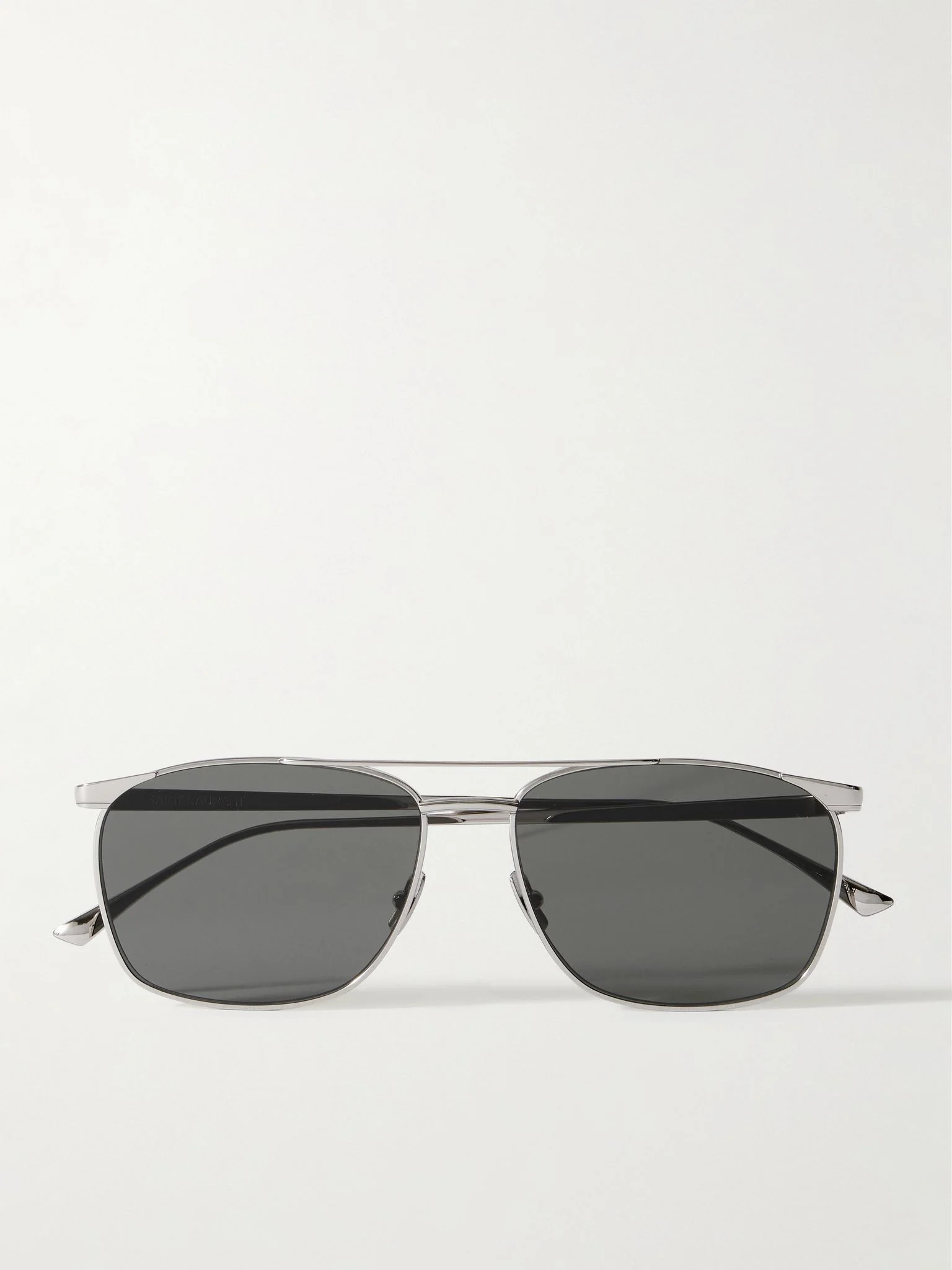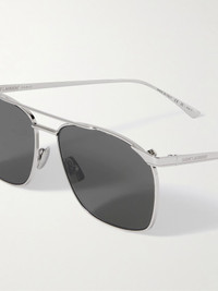 SAINT LAURENT Eyewear's sunglasses have squared-off frames that nod to classic aviator styles. Made from silver-tone metal, they're polished to a high shine and have a double bridge. Don't miss the logos engraved along the slim arms. Details & Care - Silver-tone metal - Come with a case - 100% UV protection