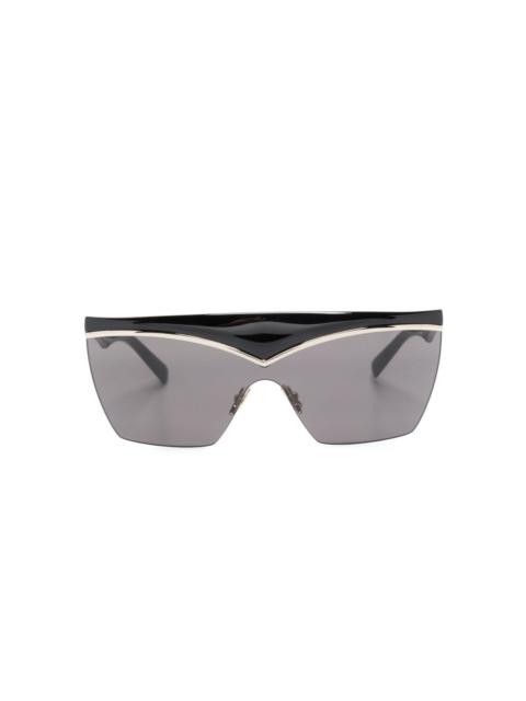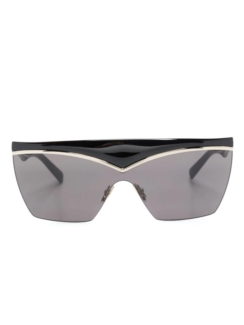 SL 614 Mask shield-frame sunglasses Highlights - Black - Acetate - Gold-tone trim - Shield frame - Tinted lenses - Uv-protective lenses - Logo-engraved arm - Sculpted arms - Curved tips - These glasses come with a protective case. Made in Italy Composition Acetate 100% SIZE & FIT Measurement Arm Length 5.11 in(13 cm) Bridge Width 0.39 in(1 cm) Lens Diameter 2.95 in(7.5 cm) Total Width 5.51 in(14 cm)