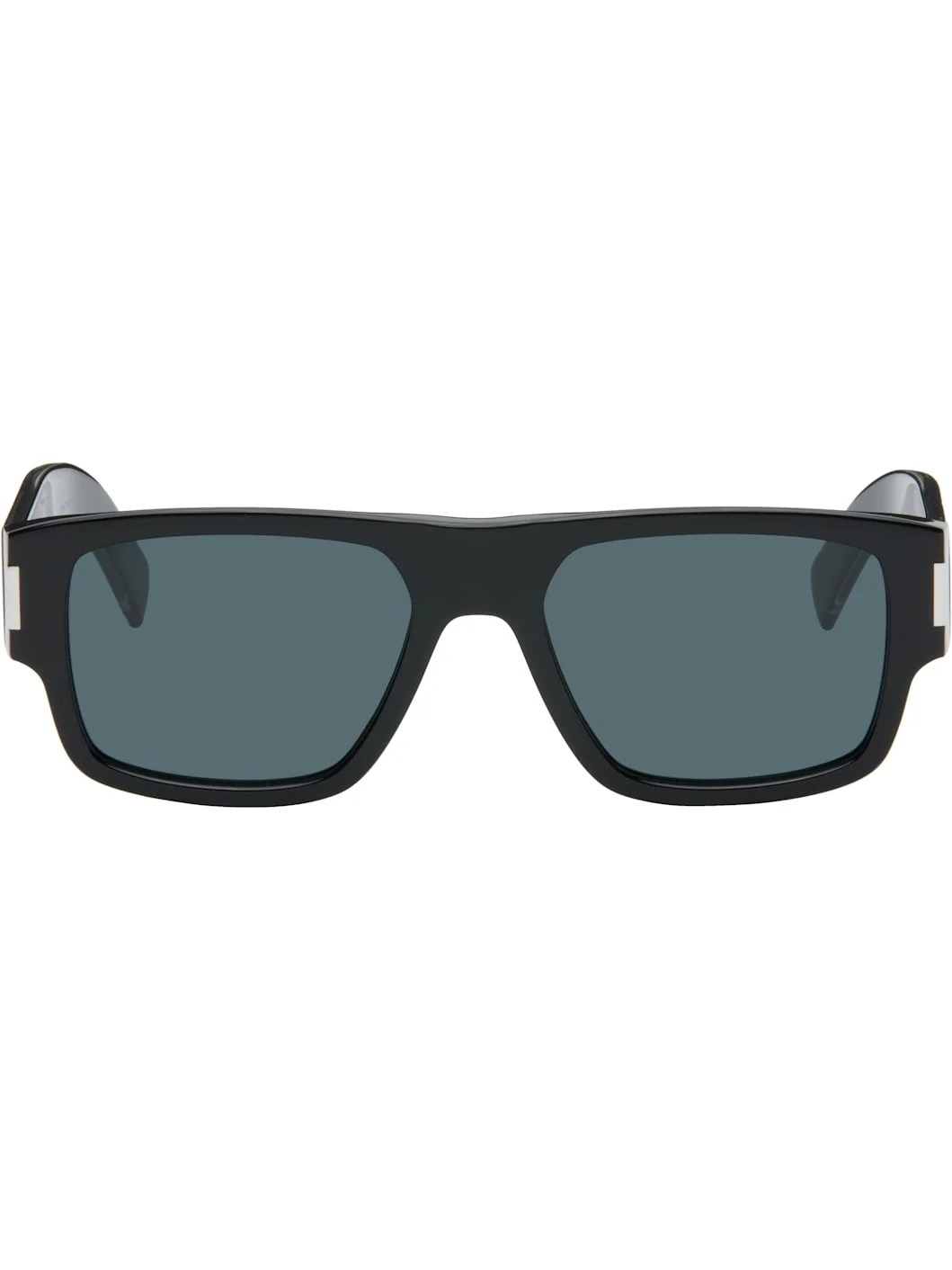 Square acetate-frame sunglasses. · Gray lenses · 100% UVA/UVB protection, category 3 · Integrated nose pads · Logo etched at temples · Exposed core wires · Includes pouch · Size: 55.19 145 Supplier color: Black/Crystal/Black Acetate. Made in Japan 252418M134036