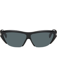 Cat-eye semi-rimless acetate-frame sunglasses in black. · Gray lens, category 3 · 100% UVA/UVB protection · Integrated nose pads · Logo etched at temples · Includes case · Size: 99.1 145 Supplier color: Black Acetate. Made in Italy 252418M134029