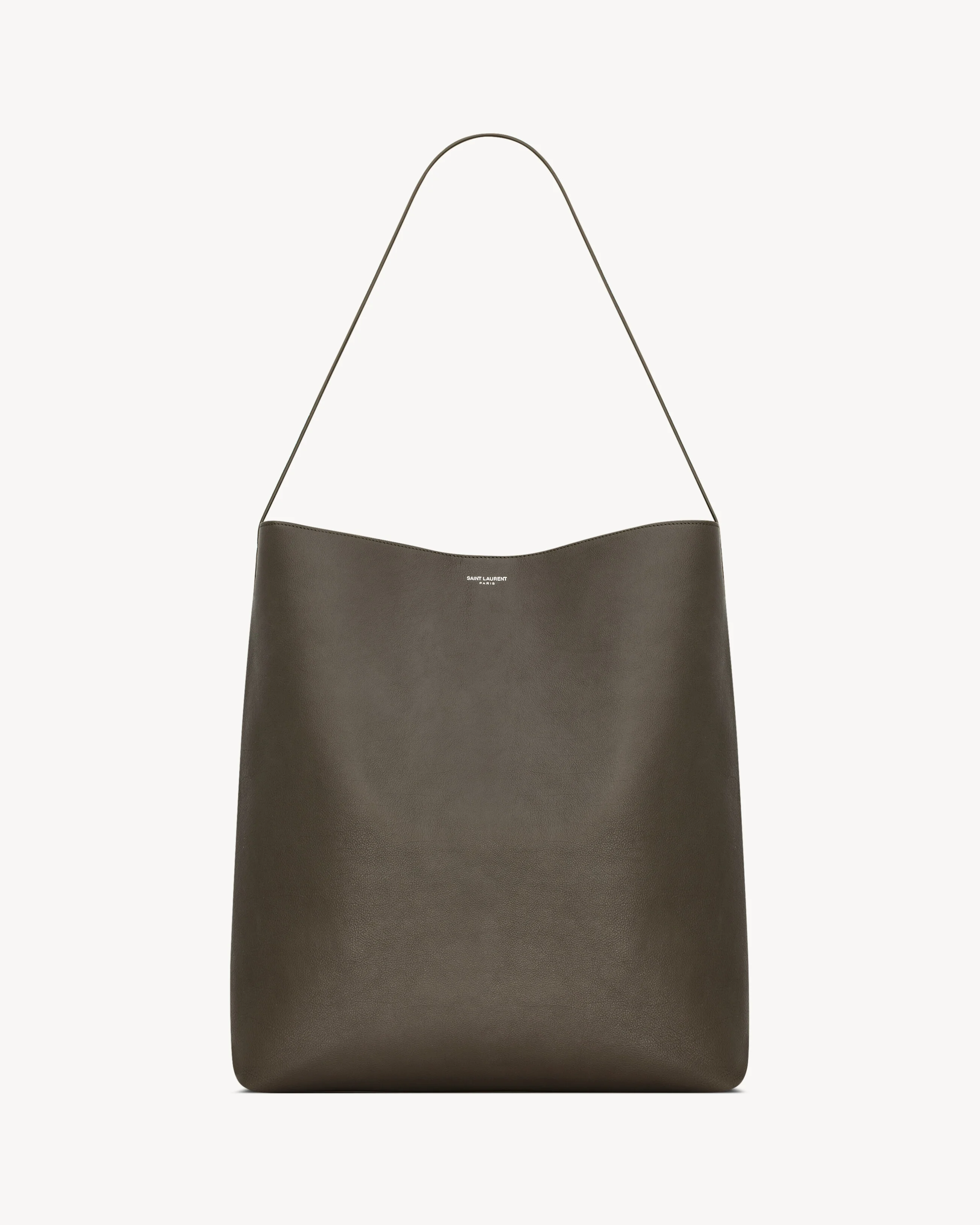 LARGE LEATHER HOBO BAG MADE WITH FINELY GRAINED CHROME-FREE, VEGETABLE-TANNED LEATHER, DECORATED WITH THE SAINT LAURENT PARIS SIGNATURE. THIS SUPPLE, ELEGANT BAG FEATURES A LEATHER SHOULDER STRAP AND INNER ZIP POUCH. - CHROME-FREE TANNED LEATHER - COTTON AND LINEN LINING - SILVER-TONE HARDWARE - SNAP-BUTTON CLOSURE - ONE ZIP POCKET - DIMENSIONS: 37 X 42 X 16 CM / 14.6" X 16.5" X 6.3" - HANDLE DROP: 34 CM / 13.4" - 95% CALFSKIN 5% BRASS - STYLE ID 845383AAEL53212 - MADE IN ITALY