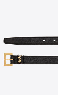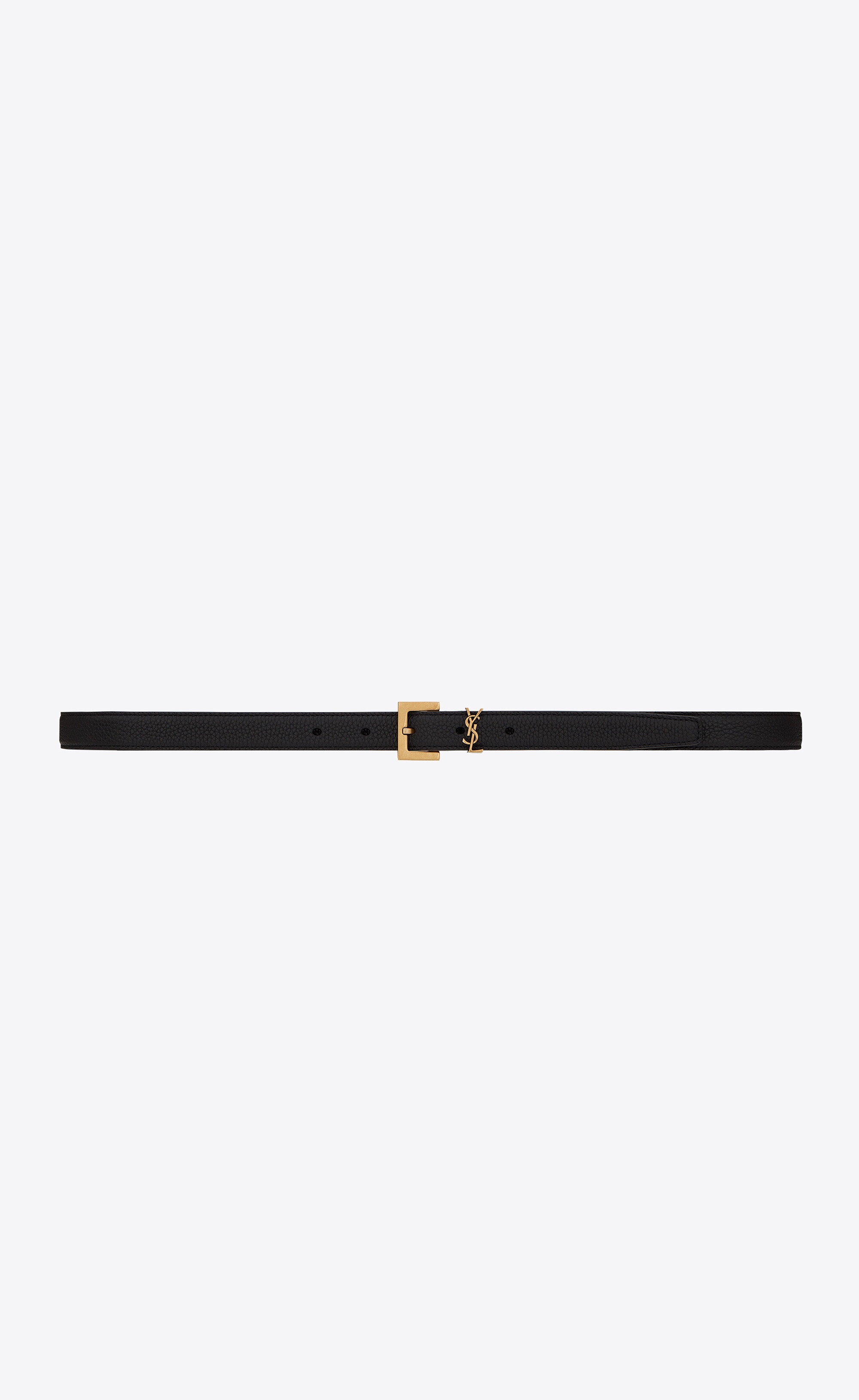 THIN BELT WITH REMOVABLE SQUARE BUCKLE ENGRAVED WITH SAINT LAURENT PARIS AND FEATURING A METAL SAINT LAURENT MONOGRAM LOOP. - 100% CALFSKIN LEATHER - DIMENSIONS: 2 CM / 0.8 INCHES - ADJUSTABLE BELT: 65–110 CM - BRONZE-TONED METAL HARDWARE - ADJUSTABLE BUCKLE CLOSURE - STYLE ID 612616DTI0W1000 - MADE IN ITALY