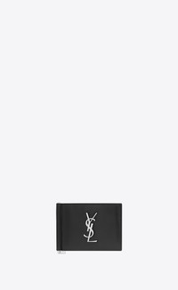 SINGLE-COMPARTMENT WALLET, WITH A CENTRAL BILL CLIP AND YSL INTERLACED INITIALS IN METAL. - 100% CALFSKIN LEATHER - HARDWARE IN OXIDIZED NICKEL - SIX CARD SLOTS - ONE MONEY CLIP - STYLE ID 808338445 - MADE IN ITALY