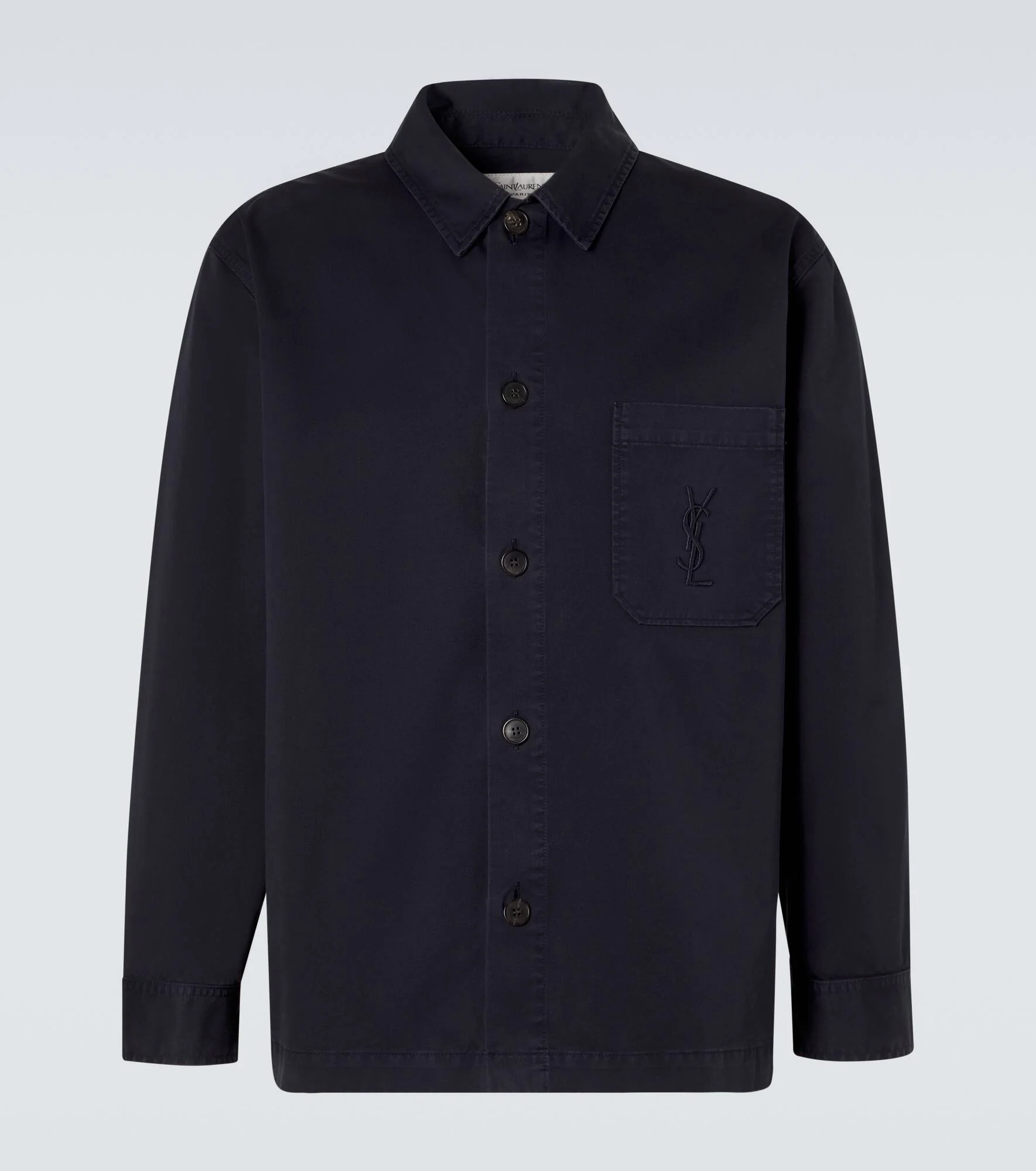 Since its conception in 1961, Saint Laurent has been coveted for its elegant Parisian aesthetic. Crafted from navy-hued cotton, this shirt boasts a relaxed silhouette with the house's signature Cassandre motif embroidered on the chest pocket. Product Details - Material: 100% cotton - Care instructions: machine wash at 30 degrees - Made in Italy - Color: blue - Designer color name: French Navy - Item color: blue - Collar: classic (Straight point) - Cuff: buttoned - Closure: partially buttoned front - Item number: P01142311 Size & Fit - True to size - Designed for a loose fit - Non-stretchy fabric - Falls below the hip - Height of model is 189cm-74.5" and wears a size L