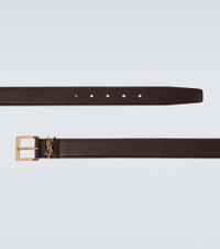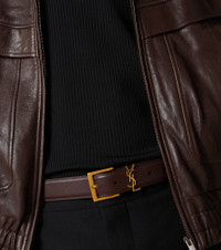 Saint Laurent's Cassandre belt will infuse your look with a high-fashion finish. The timeless design is crafted in Italy from brown leather and boasts gold-toned hardware, including an adjustable square buckle and the brand's unmistakable YSL signature loop. Product Details - Material: calf leather - Lining: leather - Made in Italy - Color: brown - Designer color name: Burnt Chocolate - Item color: brown - Hardware color: gold - Includes: dust bag - Item number: P01142340 Size & Fit - Width 3cm-1" - Buckle width 3,7cm-1.5"