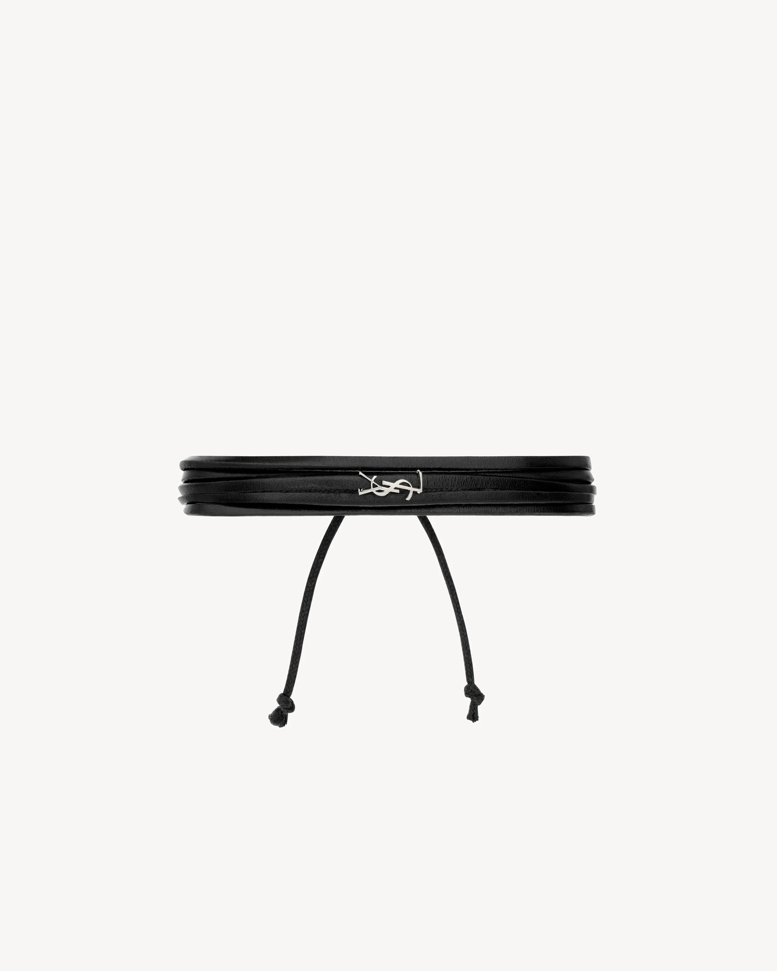 MULTI-CORD BRACELET MADE WITH METAL-FREE TANNED LEATHER, ADORNED WITH THE CASSANDRE AT THE CENTER. - SAINT LAURENT ENGRAVED PLAQUEDIMENSIONS: 60 X 220 CM / 23.6" X 86.6" - VEGETAL LEATHER, CORD, METAL - STYLE ID 820441AAEKE1000 - MADE IN ITALY