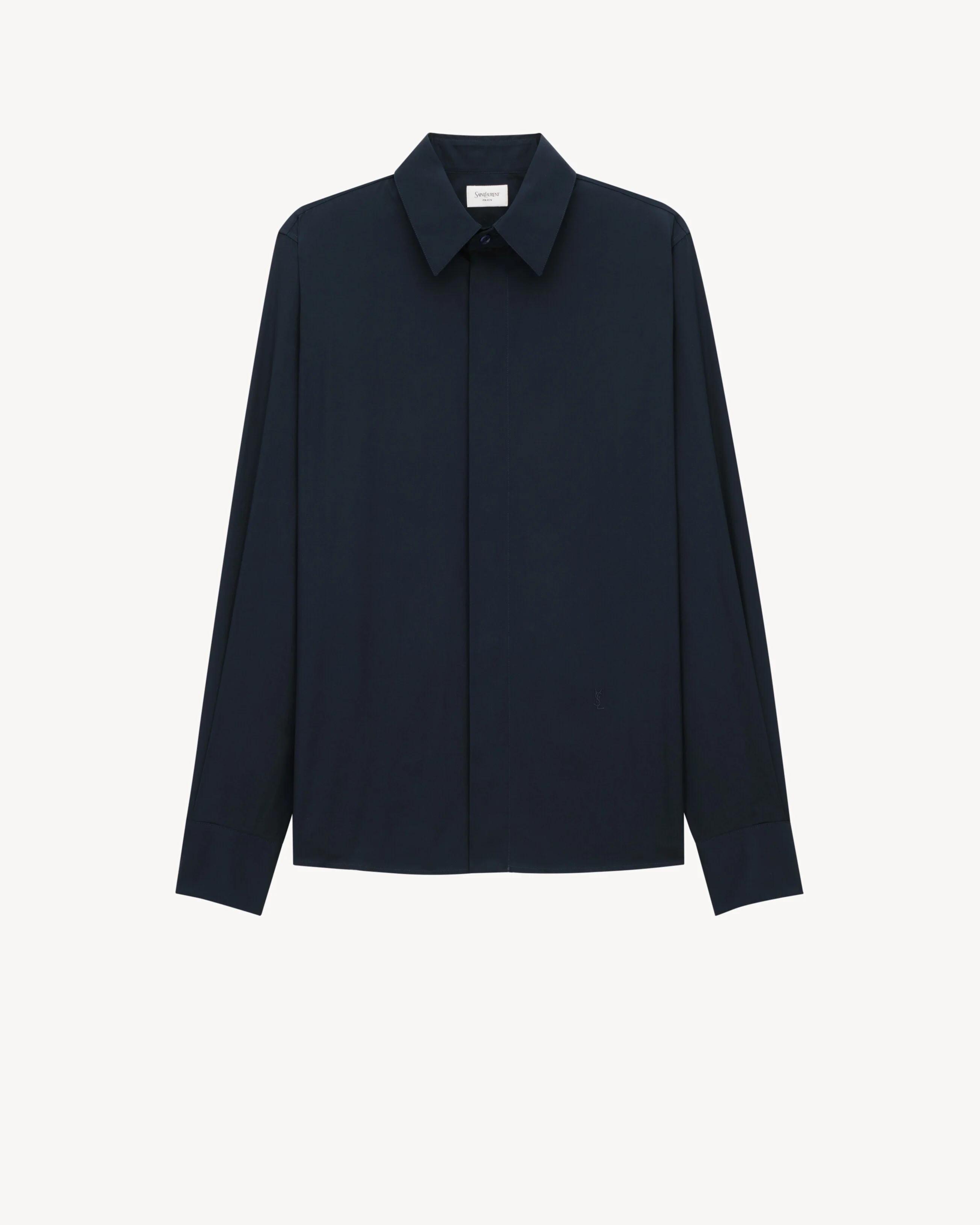 BUTTONED SHIRT WITH A POINTED COLLAR, AND CASSANDRE EMBROIDERY AT THE HIP. - POINTED COLLAR - ONE-BUTTON CUFFS - STRAIGHT HEM - BACK CENTER BOX PLEAT - 100% COTTON - STYLE ID 848033Y2M214102 - MADE IN ITALY