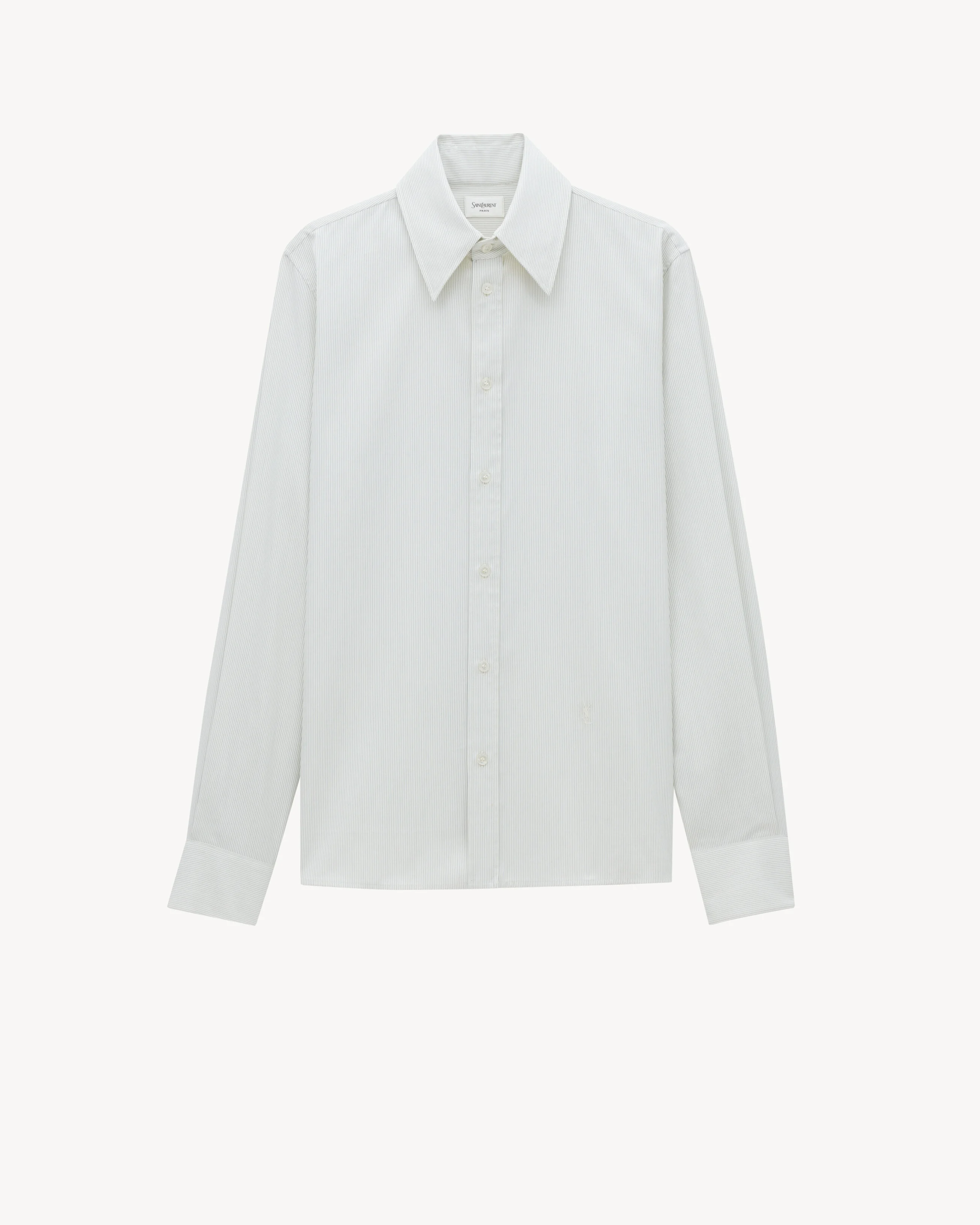 BUTTONED SHIRT WITH A POINTED COLLAR, AND CASSANDRE EMBROIDERY AT THE HIP. - POINTED COLLAR - ONE-BUTTON CUFFS - STRAIGHT HEM - BACK CENTER BOX PLEAT - 100% COTTON - STYLE ID 848033Y5G309086 - MADE IN ITALY