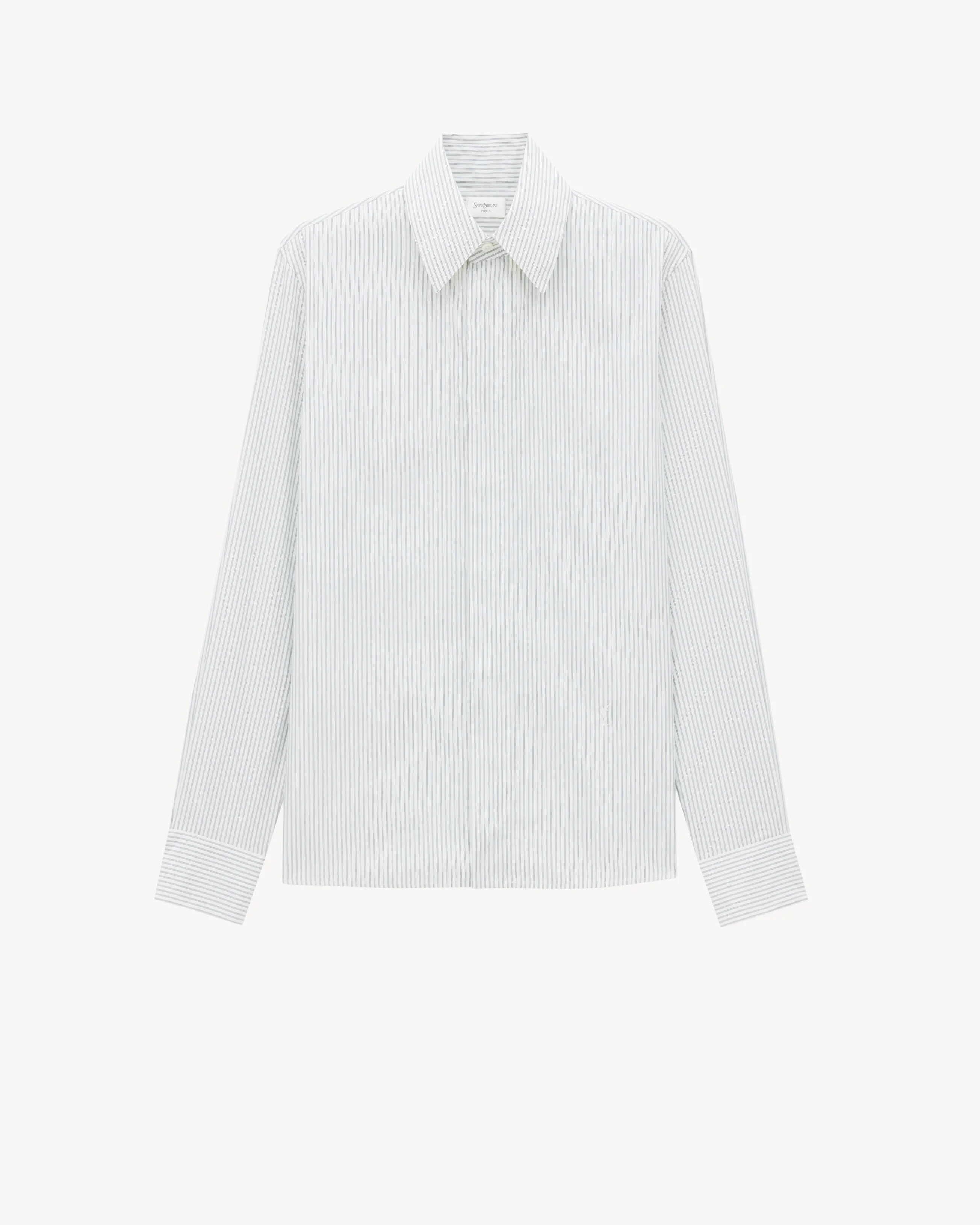 BUTTONED SHIRT WITH A POINTED COLLAR, AND CASSANDRE EMBROIDERY AT THE HIP. - POINTED COLLAR - ONE-BUTTON CUFFS - STRAIGHT HEM - BACK CENTER BOX PLEAT - 100% COTTON - STYLE ID 848033Y7C329787 - MADE IN ITALY