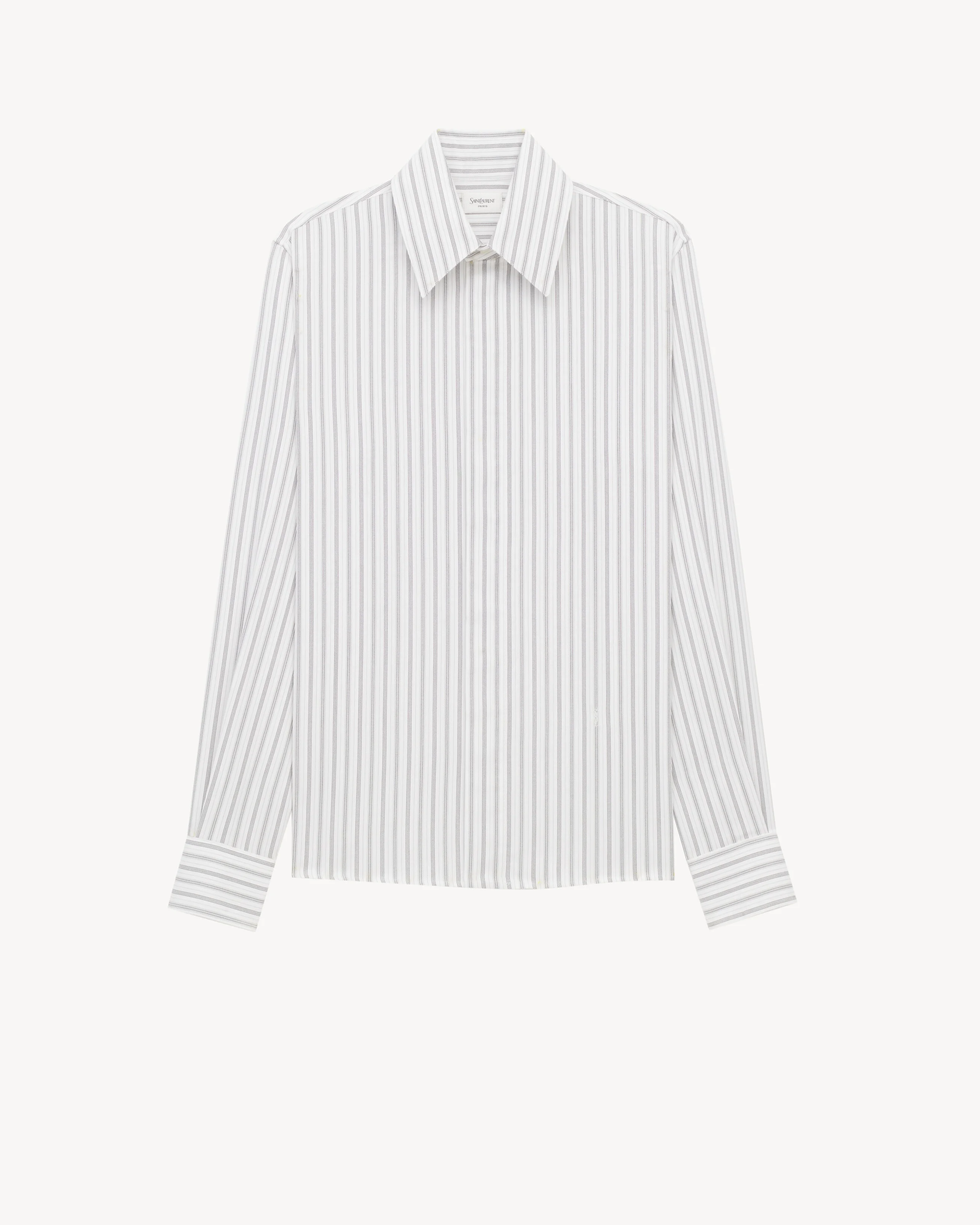BUTTONED SHIRT MADE WITH CERTIFIED COTTON, FEATURING A POINTED COLLAR, AND CASSANDRE EMBROIDERY AT THE HIP. - CERTIFIED COTTON - POINTED COLLAR - ONE-BUTTON CUFFS - STRAIGHT HEM - BACK CENTER BOX PLEAT - 100% COTTON - STYLE ID 848033Y6K479185 - MADE IN ITALY