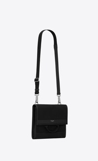 CROSSBODY POUCH WITH FRONT FLAP DECORATED WITH AN EMBOSSED SAINT LAURENT PARIS SIGNATURE. - 90 % POLYAMIDE, 5% BULLSKIN, 5% BRASS - DIMENSIONS: 22.5 X 18 X 2 CM / 8.9 X 7.1 X 0.8 INCHES - STRAP DROP: 37.5 CM / 14.8 INCHES - SILVER-TONED METAL HARDWARE - EXTERIOR: ONE HANDLE, ONE ZIPPED POCKET IN THE BACK - INTERIOR: TWO COMPARTMENTS, ONE CARD SLOT ON THE INSIDE - CANVAS LINING - STYLE ID 810807182 - MADE IN ITALY