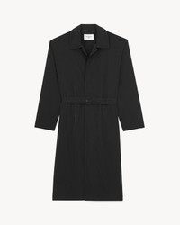 KNEE-LENGTH COAT FEATURING A POINTED COLLAR. - UPPER BODICE: VISCOSE AND COTTON LINING - LOWER BODICE: POLYESTER AND COTTON LINING - CONCEALED FRONT BUTTON CLOSURE - TWO WELT POCKETS AT THE FRONT - ONE INNER WELT POCKET - POINTED COLLAR - SINGLE BACK VENT - 100% COTTON - STYLE ID 858573YZ9CV1000 - MADE IN ITALY