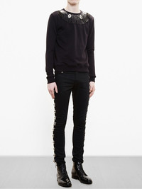 concho detail sweatshirt From the Saint Laurent 'Psych Rock' collection, this leather and jersey sweatshirt exemplifies the 70s' rocker aesthetic that's at the heart of the brand. Imported Composition Cotton 95%, Leather 5%