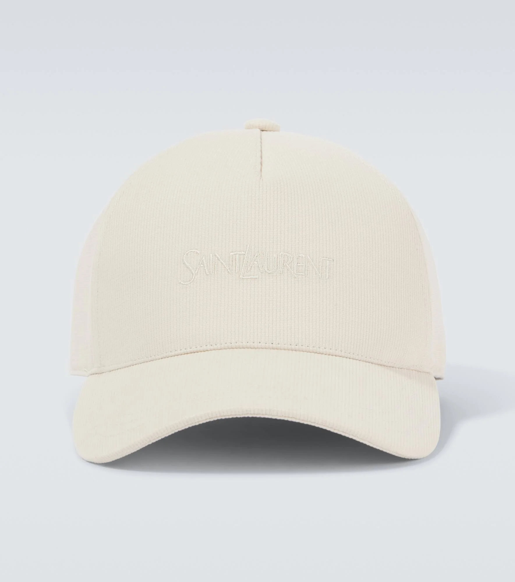 Level up your accessories game with this baseball cap from Saint Laurent. Made from cotton corduroy, it's accented with tonal logo embroidery on the front and features an adjustable strap for ease. Product Details - Material: 100% cotton - Care instructions: do not wash - Made in Bulgaria - Designer color name: Ivory - Lining: 80% polyester, 20% cotton - Includes: dust bag - Item number: P01023258 Size & Fit - Adjustable size - Length of visor 7cm-3"