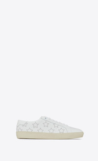 LOW-TOP LACED SNEAKERS WITH SILVER-TONE STUDDED STARS AND A SAINT LAURENT SIGNATURE EMBOSSED ON THE BACK TAB. - 90% CALFSKIN LEATHER, 10% BRASS - RUBBER SOLE - STYLE ID 713615AAASW9030 - MADE IN ITALY