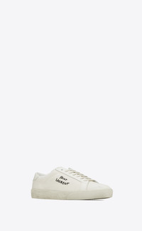 LOW-PROFILE SNEAKERS MADE WITH DISTRESSED ORGANIC COTTON CANVAS AND LEATHER STITCHED SAINT LAURENT ALONG OUTER SIDE AND SAINT LAURENT SIGNATURE EMBOSSED BACK TAB. - 90% COTTON, 10% CALFSKIN LEATHER - ORGANIC COTTON - RUBBER SOLE - DISTRESSED BY HAND RESULTING IN EACH PAIR HAVING UNIQUE RIPS AND HOLES - STYLE ID 611106GUP109113 - MADE IN ITALY