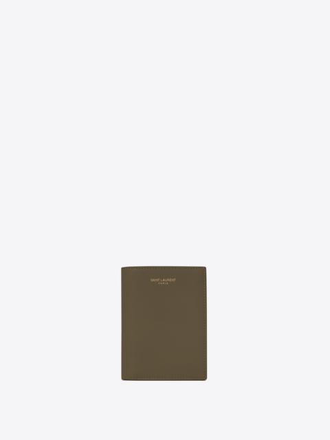 SINGLE-FOLD WALLET EMBOSSED WITH A SAINT LAURENT PARIS SIGNATURE. - CHROME FREE AND METAL FREE TANNED LEATHER - DIMENSIONS: 9 X 11,5 X 2 CM / 3,5 X 4,5 X 0,8 INCHES - SILVER-TONED METAL HARDWARE - FOUR CREDIT CARD SLOTS, TWO RECEIPT COMPARTMENTS, ONE BILL COMPARTMENT - THIS PRODUCT CAN ALSO BE SHIPPED UNDER CODE 607051BTY0N1000 - CALFSKIN LEATHER - STYLE ID 668726BTY0N1000 - MADE IN ITALY