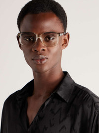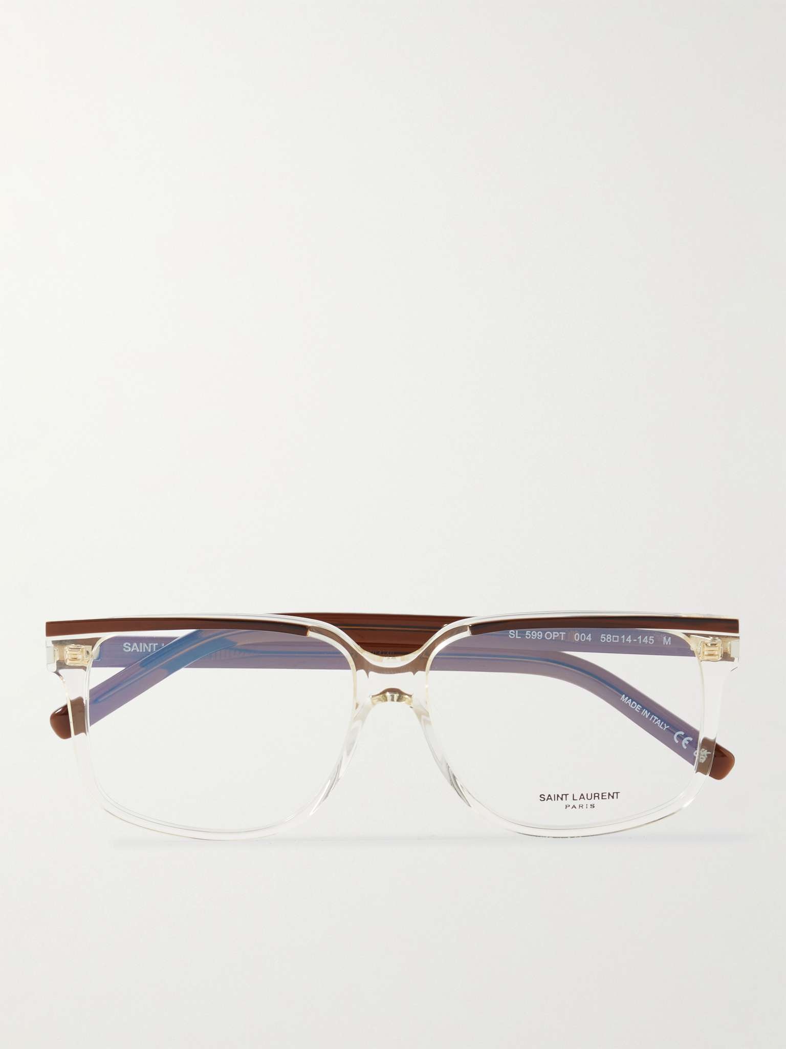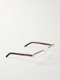 One reason clear glasses are so popular is their versatility - you can wear them with smart and casual outfits alike, no matter the shade. Crafted from durable acetate, SAINT LAURENT's pair has clear D-frames detailed with sleek brown highlights for contrast. The label's moniker is debossed on the sides. Size & Fit - Frame Width: 14.5cm / 5.7in - Frame Height: 5cm / 2in Details & Care - Clear and brown acetate - Come with a case - Made in Italy