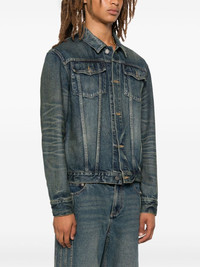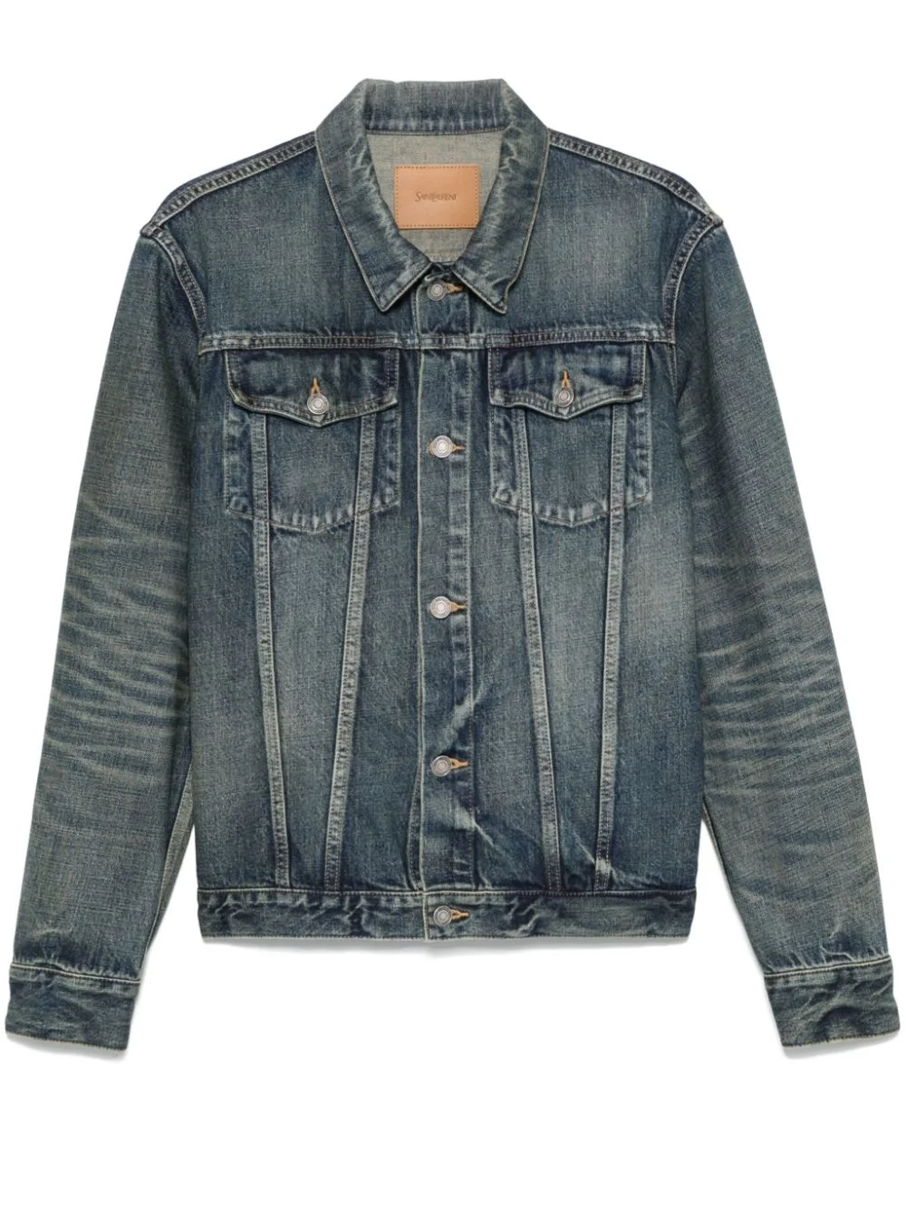 denim jacket Highlights - Blue - Cotton - Washed denim - Whiskering effect - Front button fastening - Classic collar - Seam detailing - Long sleeves - Buttoned cuffs - Two chest flap pockets - Waist tabs - Straight hem Imported Composition Outer: Cotton 100% Lining: Bos Taurus 100% SIZE & FIT Model measurements Height 6 ft 2 in(1.88 m) Bust/Chest 35.43 in(90 cm) Hips 36.61 in(93 cm) Waist 27.95 in(71 cm) FittingInformation Designed for a slim fit, offering a comfortable fit that sits just away from the body The adjustable tabs allow for fitted preferences Sturdy and hard-wearing, this denim piece offers no stretch