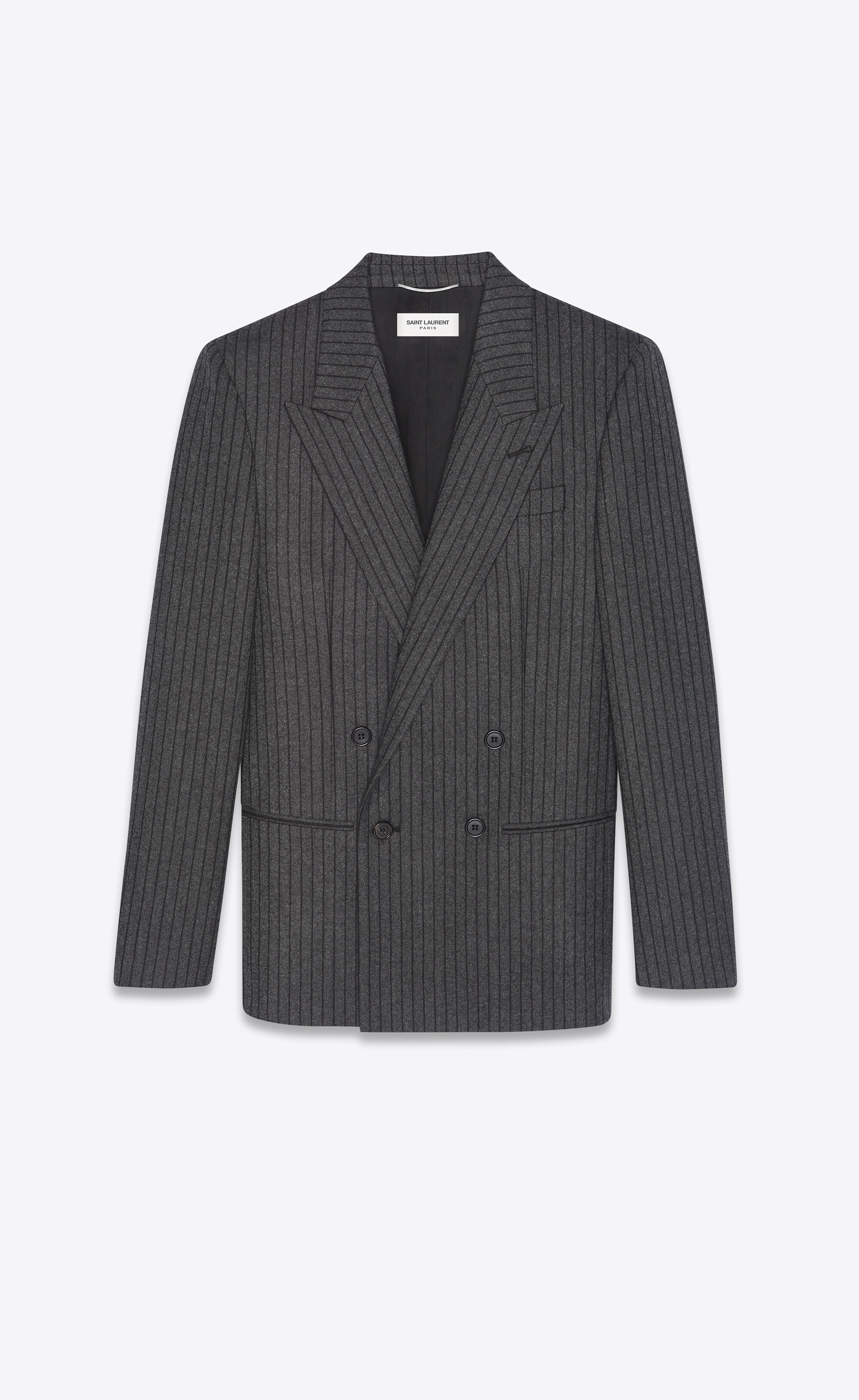 DOUBLE-BREASTED, FOUR-BUTTON SHORT JACKET WITH A PEAKED LAPEL IN ALL-OVER STRIPED MOTIF. - 100% VIRGIN WOOL - SILK LINING - DOUBLE-BREASTED, FOUR-BUTTON CLOSURE - TWO JETTED POCKETS AT THE FRONT, ONE WELT POCKET AT THE CHEST - TWO INNER POCKETS - PEAKED LAPEL - TWO-BUTTON CUFFS - DOUBLE BACK VENT - STYLE ID 653850Y1D251160 - MADE IN ITALY