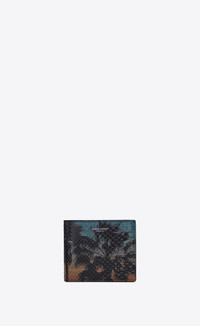SINGLE-COMPARTMENT WALLET WITH AN EMBOSSED SAINT LAURENT PARIS SIGNATURE, FEATURING A SUNSET AND PALM-TREE PATTERN WITH A VHS EFFECT. - 100% PYTHON - DIMENSIONS: 11 X 9.5 X 2.5 CM / 4.3 X 3.7 X 1 INCHES - SILVER-TONED METAL HARDWARE - INTERIOR: EIGHT CREDIT CARD SLOTS, TWO RECEIPT COMPARTMENTS, TWO BILL COMPARTMENTS - STYLE ID 810311443 - MADE IN ITALY