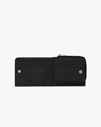SINGLE-FOLD WALLET WITH ZIP-AROUND POCKET, EMBOSSED WITH SAINT LAURENT PARIS. - DIMENSIONS: 10,5 X 9 X 1,5 CM - SILVER-TONED METAL HARDWARE - ZIPPER CLOSING - SIX CARD SLOTS - ONE BILL SLOT - ONE COIN PURSE - CALFSKIN LEATHER - STYLE ID 556268BTY7N1000 - MADE IN ITALY