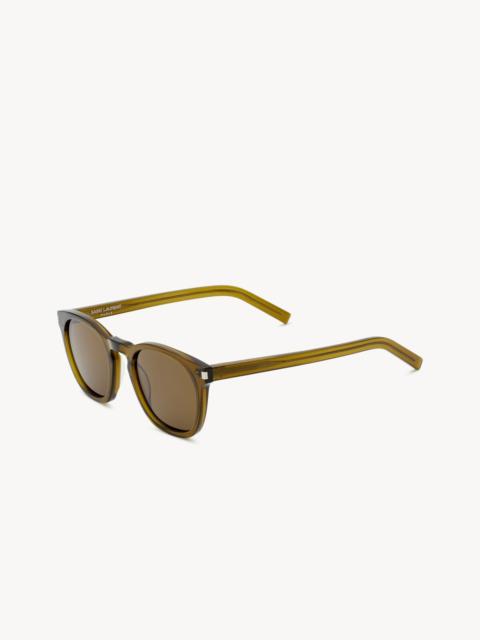 SUBTLY ROUNDED SUNGLASSES WITH KEYHOLE BRIDGE AND MINERAL GLASS LENSES. - 100% UVA/UVB PROTECTION - METAL CORNER ANGLES - SAINT LAURENT SIGNATURE ENGRAVED TEMPLES - FRAMES ARE COMPATIBLE WITH PRESCRIPTION LENSES - DIMENSIONS: LENS 49 MM / 1.9", BRIDGE 23 MM / 0.9", TEMPLE 140 MM / 5.5" - 100% ACETATE - STYLE ID 419691Y99091080 - MADE IN ITALY