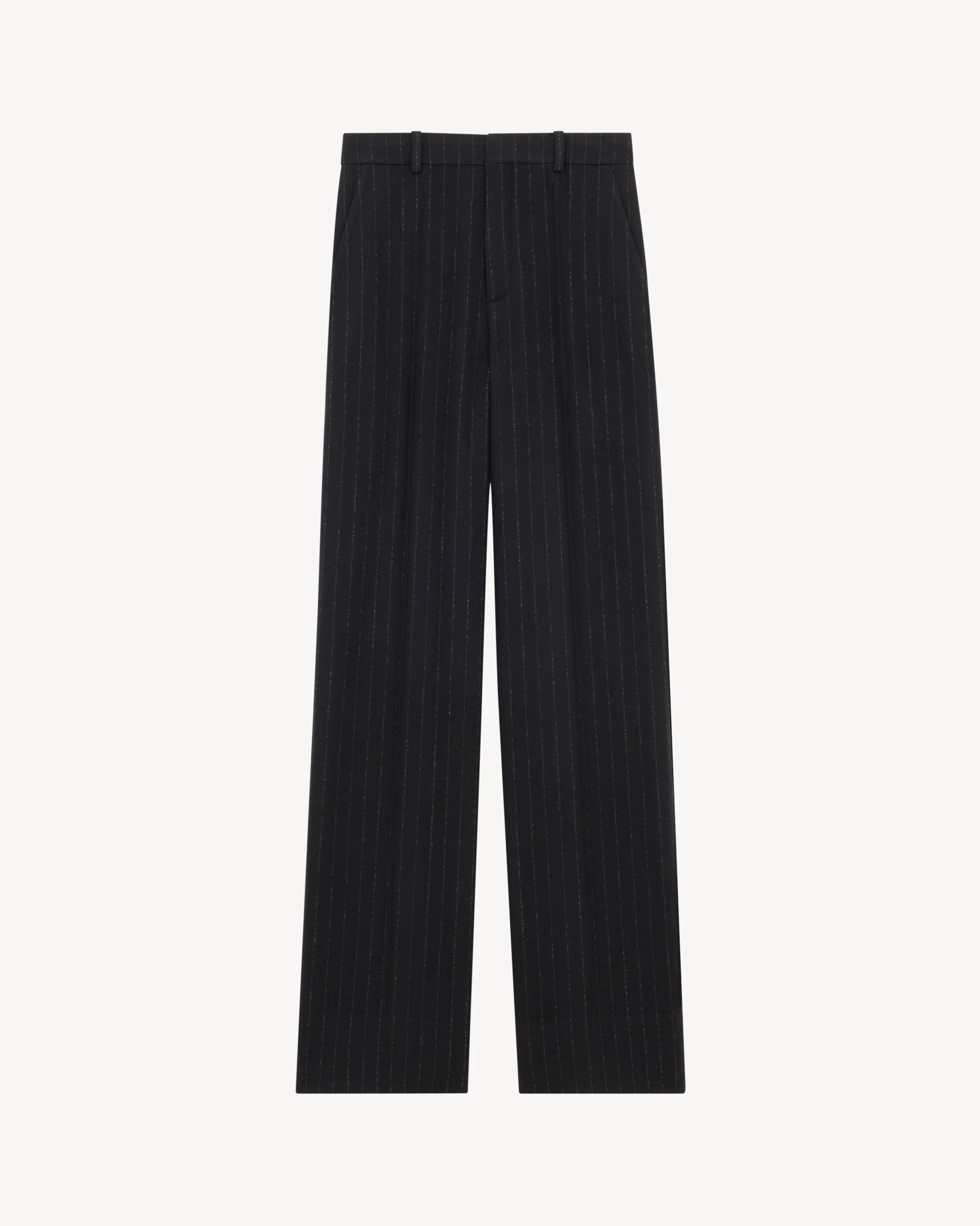 HIGH-RISE PINSTRIPE PANTS IN BRUSHED WOOL AND CASHMERE FLANNEL