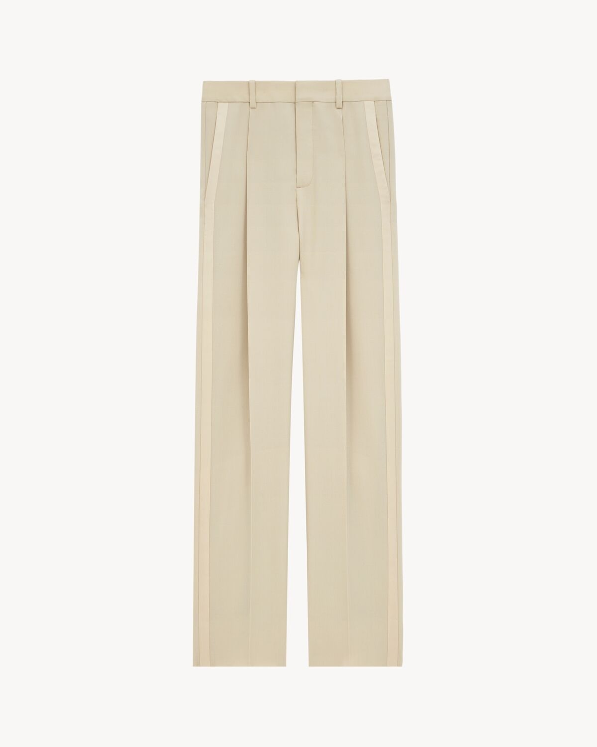 HIGH-WAISTED TUXEDO PANTS MADE WITH CERTIFIED WOOL, FEATURING SLASH POCKETS AND A CARROT FIT WITH SINGLE PLEAT AND SATIN BAND AT THE SIDES. - CERTIFIED WOOL - SILK LINING - CONCEALED BUTTON, HOOK, AND ZIP CLOSURE - TWO SLASH POCKETS AT THE FRONT - TWO WELT POCKETS WITH BUTTON AT THE BACK - WAISTBAND WITH BELT LOOPS AND AFTER-DINNER SPLIT - 100% WOOL - STYLE ID 821987Y2L822630 - MADE IN ITALY