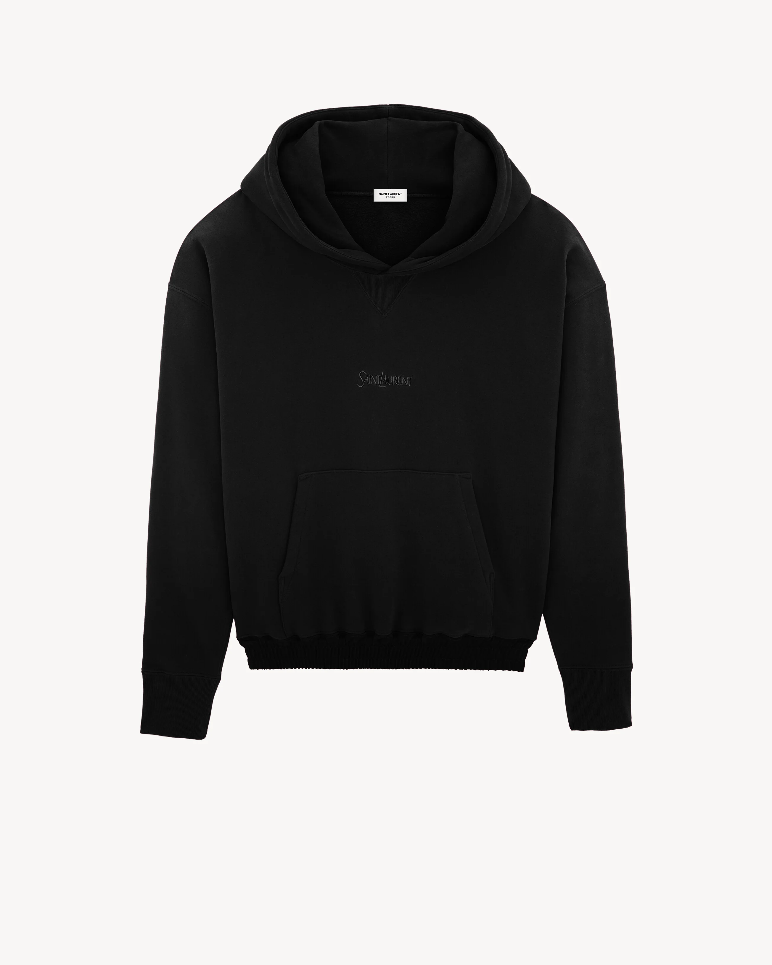 FLEECE HOODIE MADE WITH ORGANIC COTTON, FEATURING A KANGAROO POCKET, SATIN DETAILS AND TONAL SAINT LAURENT EMBROIDERY ON THE CHEST. - 100% COTTON - ORGANIC COTTON - KANGAROO POCKET - FIXED HOOD - RIBBED CUFFS - SHIRRED HEM - STYLE ID 773358Y36SW1000 - MADE IN ITALY