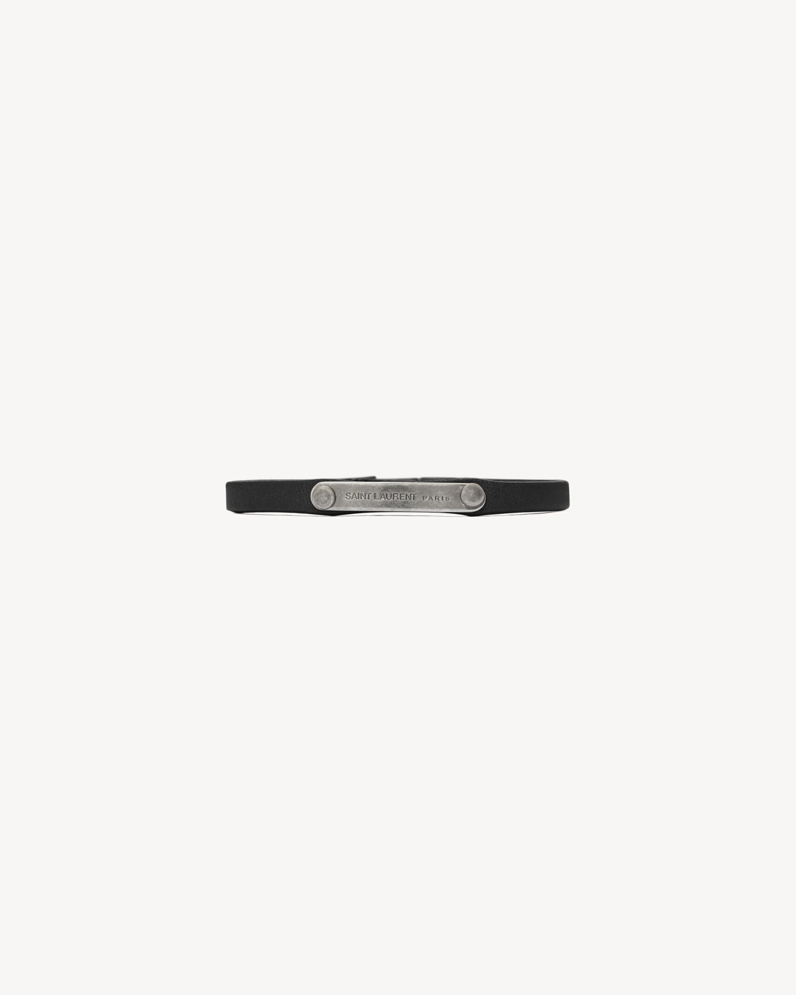 BRACELET WITH A SAINT LAURENT-ENGRAVED PLAQUE AND MAGNETIC FASTENING. - 100% BULL SKIN - BRUSHED PALLADIUM METAL PLAQUE - STYLE ID 7088500IH1D1000 - MADE IN ITALY