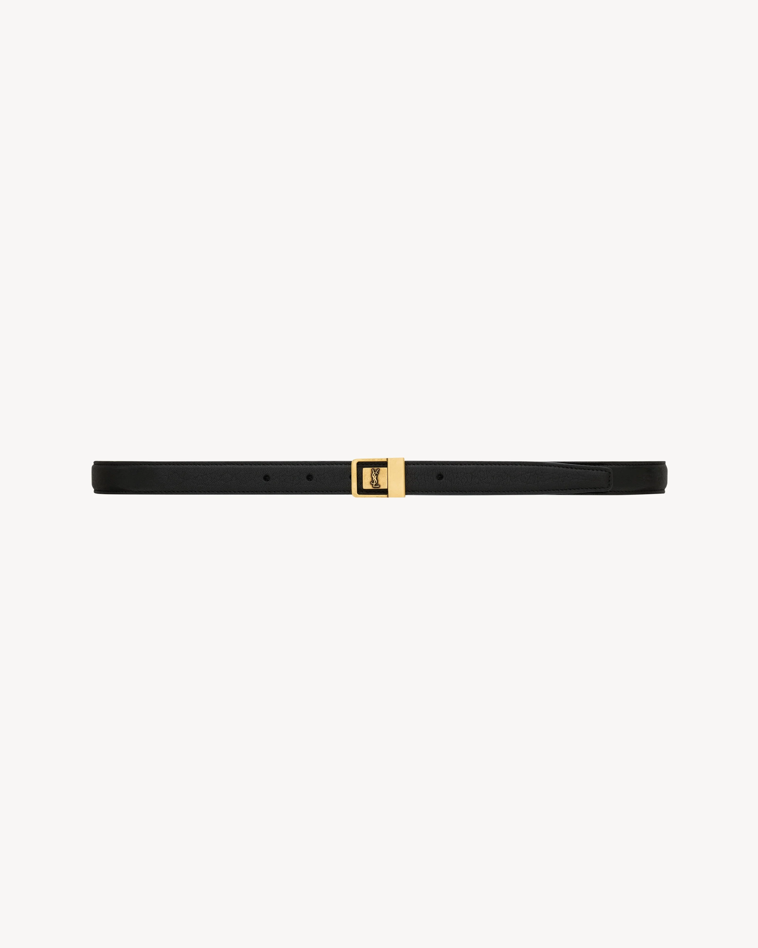 THIN BELT WITH SQUARE BUCKLE EMBOSSED WITH THE CASSANDRE. - DIMENSIONS: 2 CM / 0.7" - BRONZE-TONED HARDWARE - ADJUSTABLE BUCKLE CLOSURE - 95% CALF LEATHER 5% BRASS - STYLE ID 777966AACYT1000 - MADE IN ITALY