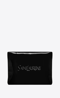 LARGE PUFFY ZIP POUCH EMBOSSED WITH SAINT LAURENT. - 70% POLYURETHANE, 30% POLYESTER - DIMENSIONS: 30 X 21 X 4 CM / 11.8" X 8.3" X 1.6" - MATTE BLACK HARDWARE - ZIP CLOSURE - TWO FLAT POCKETS, EIGHT CARD SLOTS - CANVAS LINING - STYLE ID 813326087 - MADE IN ITALY