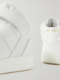 Modelled after classic basketball styles, SAINT LAURENT's high-top 'Greenwich' sneakers are made from leather with VELCRO® ankle straps and perforated toe boxes. The gold foil logos printed on the heels pop against the all-white colourway. Size & Fit - Fits true to size. Take your normal size - European sizing Details & Care - White leather - Lace-up and VELCRO® fastening - Come with dust bags - Style number: 75731700N009030