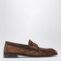 Saint Laurent loafers in Dark Havana suede• brass Cassandre logo decoration• hand-stitched moc toe• leather sole