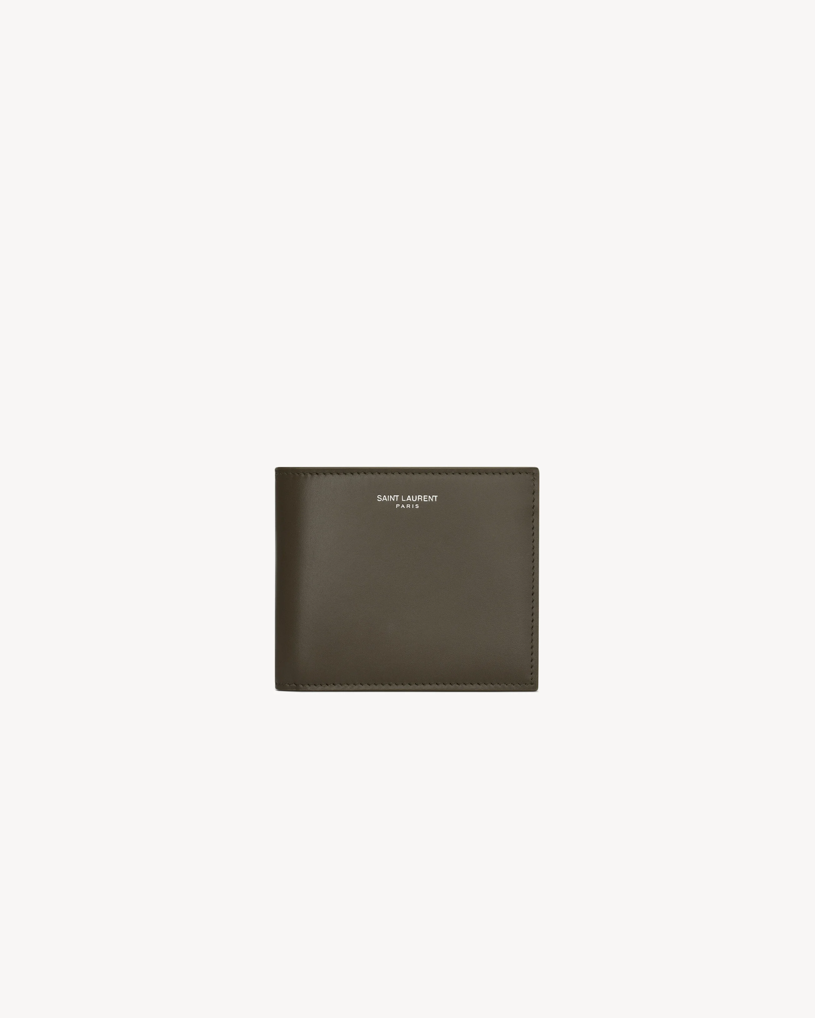 SINGLE-FOLD WALLET WITH COIN PURSE AND EMBOSSED SAINT LAURENT PARIS SIGNATURE. - LEATHER LINING - SILVER-TONED HARDWARE - FOUR CARD SLOTS - TWO RECEIPT COMPARTMENTS - TWO BILL COMPARTMENTS - ONE SNAP DOWN COIN POUCH - DIMENSIONS: 11 X 9.5 X 2.5 CM / 4.3" X 3.7" X 1" - 100% CALFSKIN LEATHER - STYLE ID 3963030U90N3212 - MADE IN ITALY