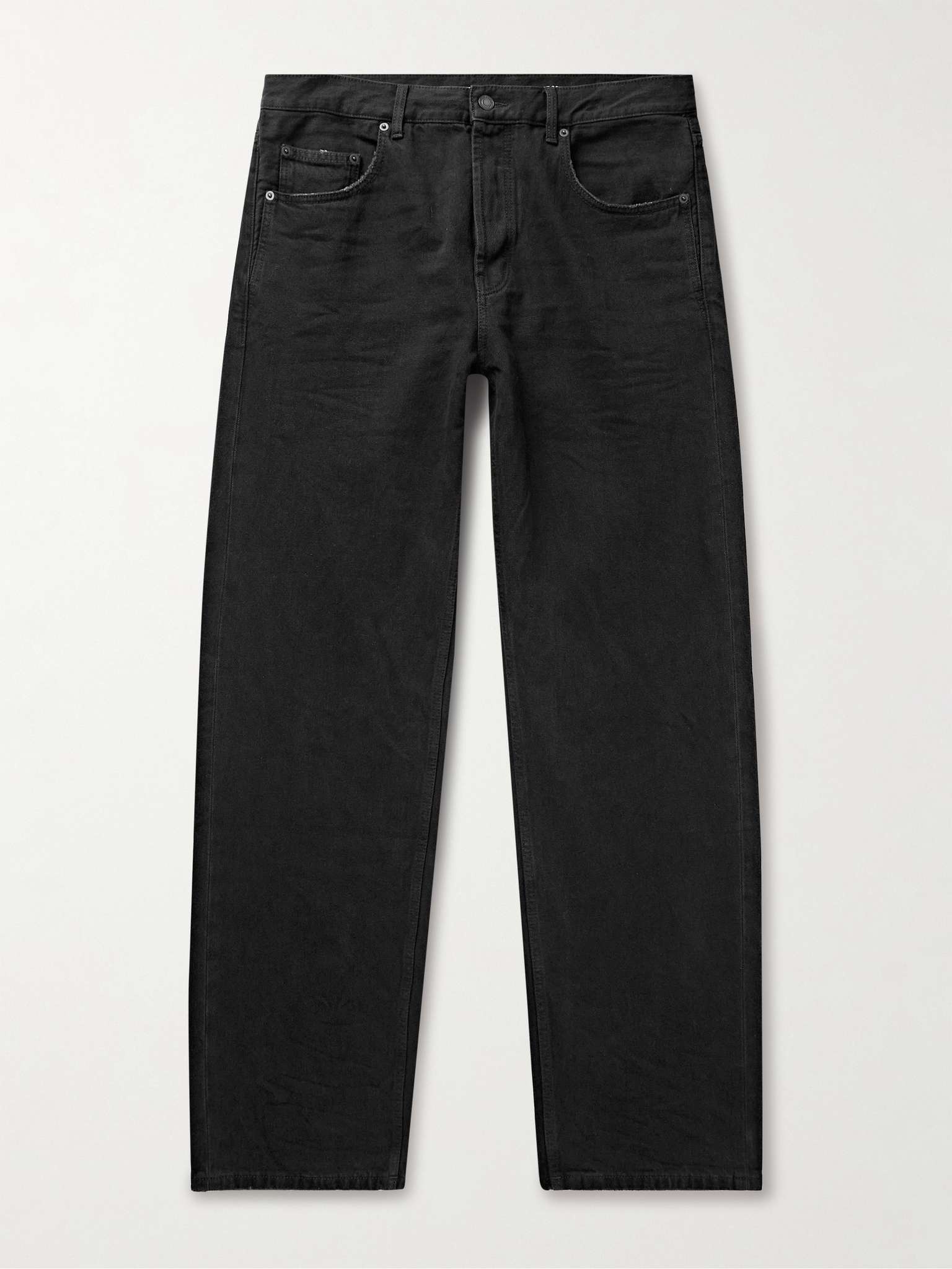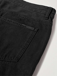 SAINT LAURENT's 'Oklahoma' jeans are cut for a wide-leg fit and meant to create the look of a full break. They're made from 'Carbon Black' denim and slightly distressed along the pockets and hems for a vintage feel. Large to size. See Size & Fit notes. Size & Fit - Fits large to size. Take one size smaller than normal - Wide leg, low-crotch style - Mid-weight, non-stretchy fabric - Model is shown wearing a 31 - Model measures: waist size 32, height 6'2"/ 188cm Details & Care - Black denim - Button fastenings - 100% cotton - Dry clean - Designer colour: Carbon Black