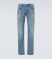 Since its conception in 1961, Saint Laurent has been coveted for its elegant Parisian aesthetic. Made from pure cotton denim, these classic jeans come in a low-rise, slim-leg silhouette and feature artful fading throughout. Product Details - Material: 100% cotton - Care instructions: machine wash at 30 degrees - Made in Japan - Designer color name: Blue Beat - Item color: blue - Contains non-textile parts of animal origin - Closure: concealed button placket - Pockets: five pockets - Belt loops - Item number: P01080746 Size & Fit - Fits large to size - we recommend trying one size smaller - Non-stretchy fabric - Slim-leg - Low-rise - Height of model is 188cm-74" and wears a size 31