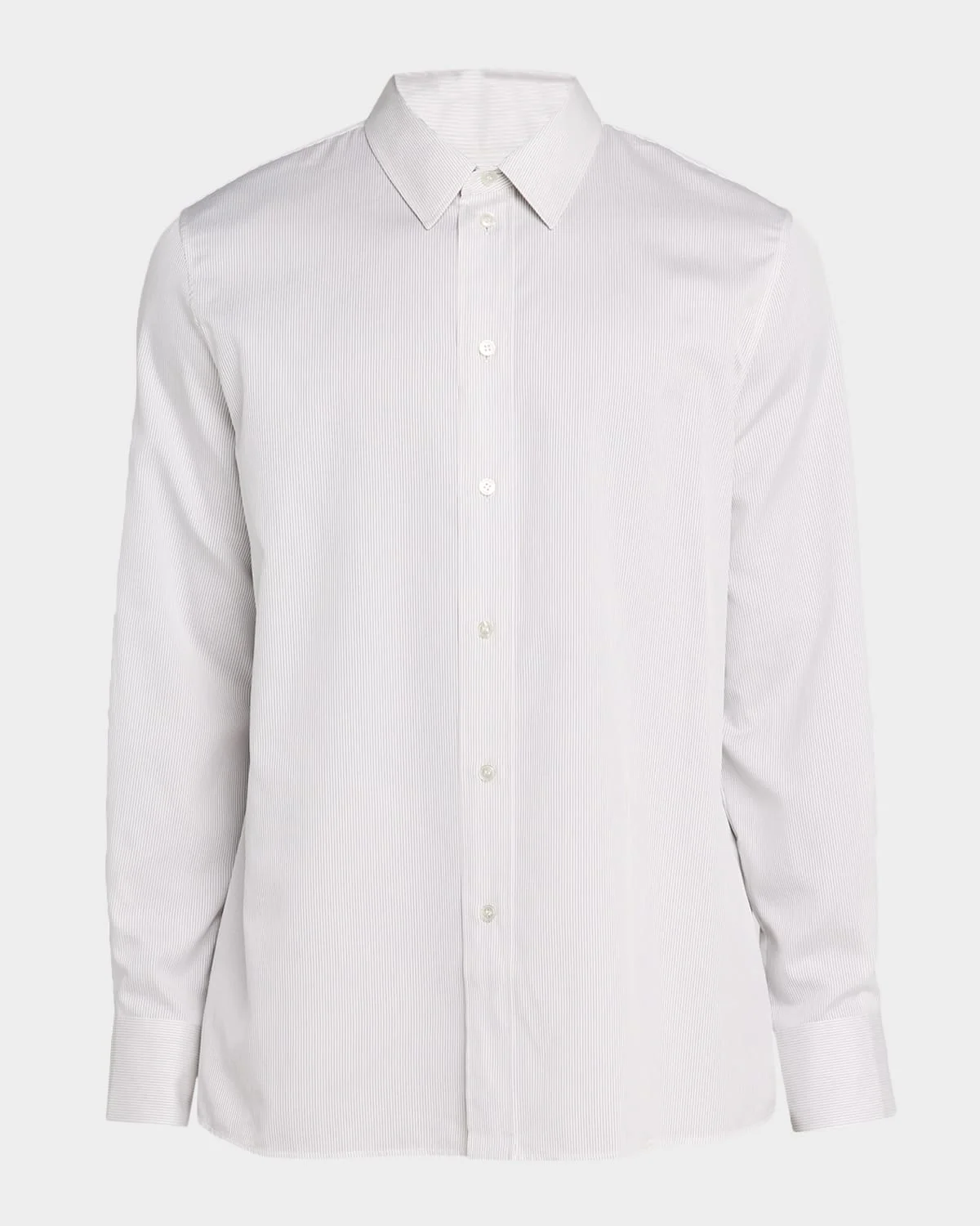 - Saint Laurent sport shirt in crisp cotton poplin accentuated with vertical hairline stripes - Point collar - Button placket - Long sleeves - Round barrel cuffs - Pleated back yoke - Shirttail hem - Cotton - Made in Italy