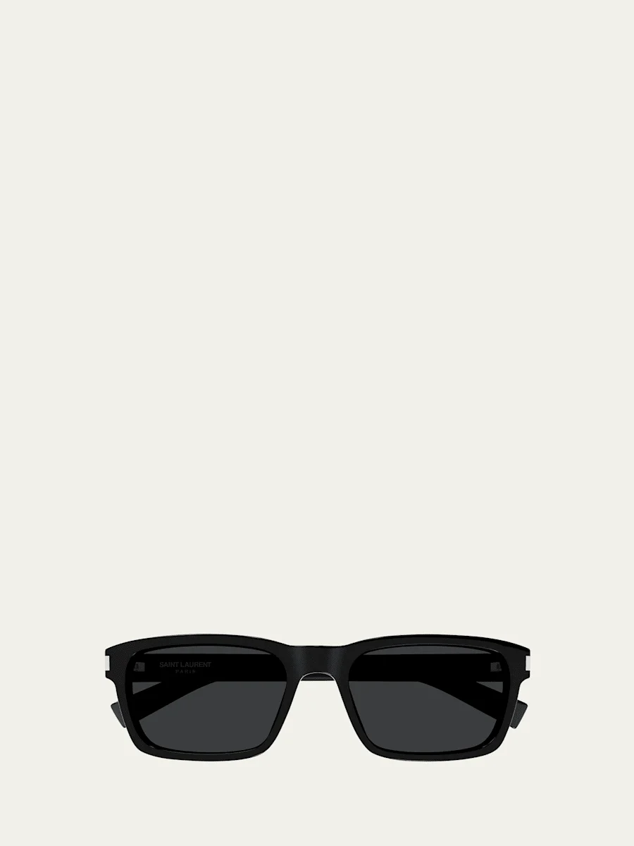 Saint Laurent rectangle sunglasses in acetate feature logo detailing at the temple Eye/bridge/temple (in mm): 57-19-145 Solid lenses Saddle nose bridge Tapered arms Acetate/nylon/polyamide 100% UVA/UVB protection Made in Italy Proposition 65 warning for California residents This product contains perfluoroalkyl and polyfluoroalkyl substances (PFAS). For more information, please visit the manufacturer’s website. Online Inquiries: BGS21_ND467| Store Inquiries: #4823100