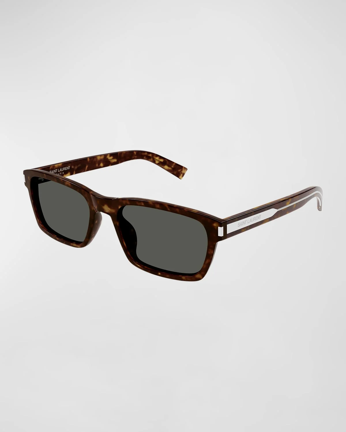 - Saint Laurent rectangle sunglasses in acetate feature logo detailing at the temple - Eye/bridge/temple (in mm): 57-19-145 - Solid lenses - Saddle nose bridge - Tapered arms - Acetate/nylon/polyamide - 100% UVA/UVB protection - Made in Italy - Proposition 65 warning for California residents - This product contains perfluoroalkyl and polyfluoroalkyl substances (PFAS). For more information, please visit the manufacturer’s website.