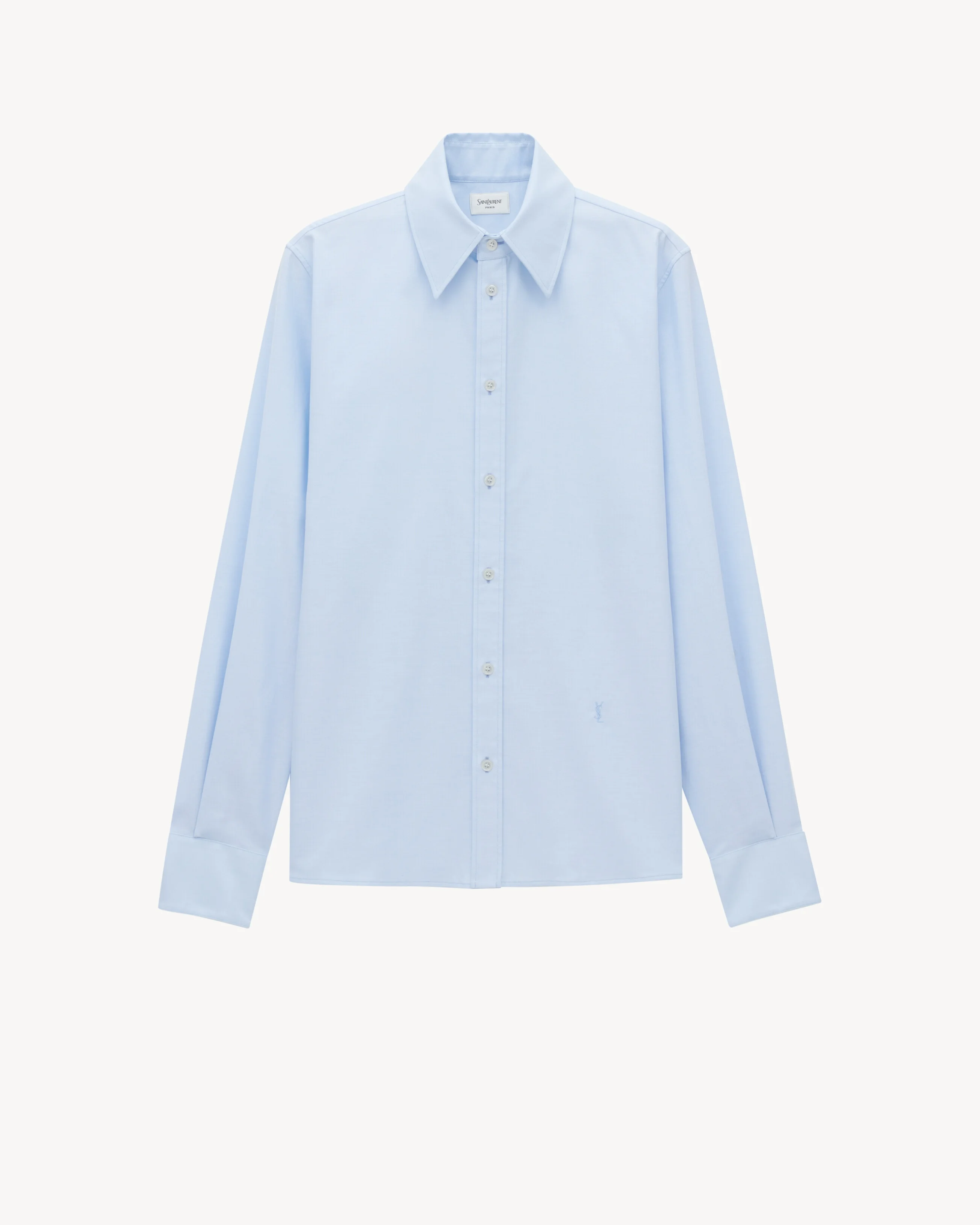 BUTTONED OXFORD SHIRT FEATURING A POINTED COLLAR, AND CASSANDRE EMBROIDERY AT THE HIP. - POINTED COLLAR - ONE-BUTTON CUFFS - STRAIGHT HEM - BACK CENTER BOX PLEAT - 100% COTTON - STYLE ID 848033Y1L254486 - MADE IN ITALY