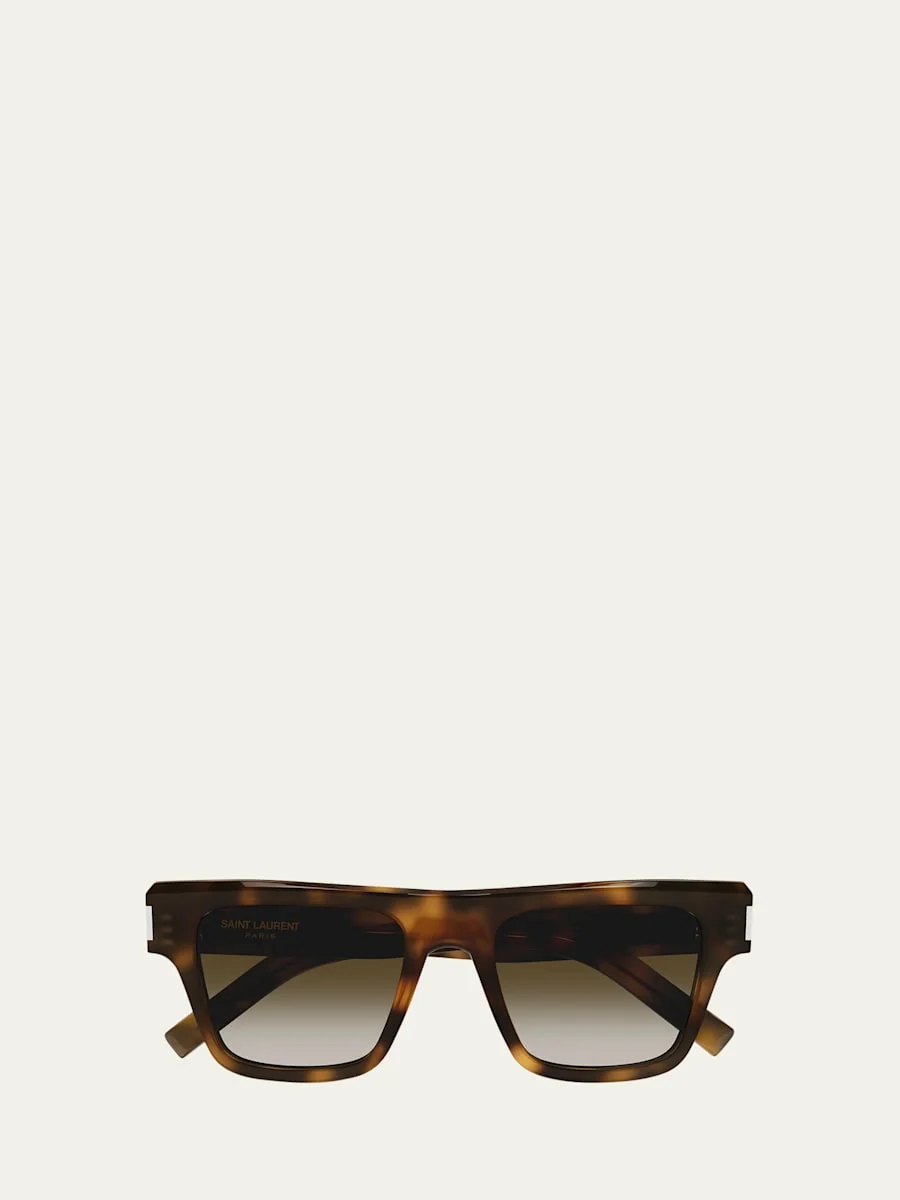 Saint Laurent "SL 469" rectangle sunglasses with acetate frames Lens/bridge/temple (in mm): 51-19-145 Gradient lenses Saddle nose bridge Temples with logo lettering Tapered arms Curved temple tips Acetate 100% UVA/UVB protection Made in Italy Proposition 65 warning for California residents Online Inquiries: BGS21_NBRX3| Store Inquiries: #4705254