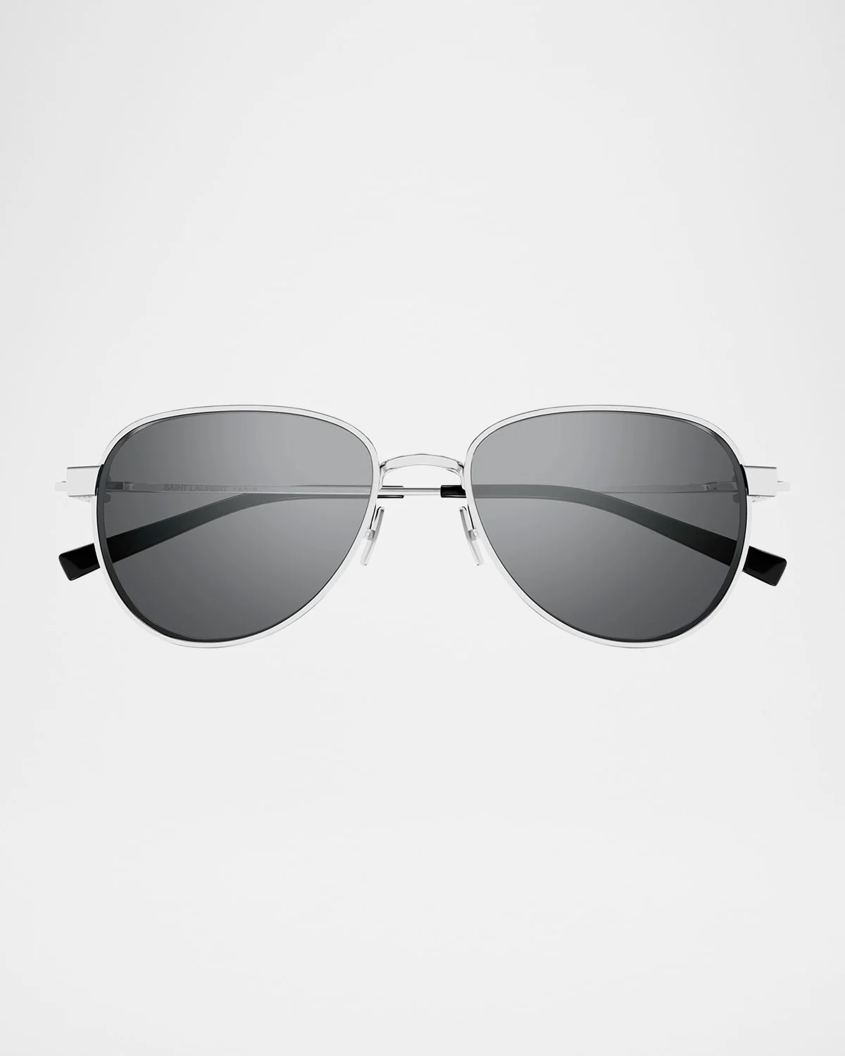 - Saint Laurent "Sl 772" aviator sunglasses in durable silvertone metal - Lens/bridge/temple (in mm): - 53-17-145 - Solid-color lenses - Adjustable nose pads - Engraved logo on the temples - Thin arms - Curved, capped temple tips - Metal - 100% UVA/UVB protection - Made in Japan - Proposition 65 warning for California residents