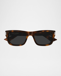 Made in Japan, these Saint Laurent sunglasses feature a rectangular silhouette with exposed metal corewire for subtle branding. Lens/bridge/temple (in mm): 5318145 100% UVA/UVB protection Saddle nose bridge Engraved logo on the temples Plastic 100% UVA/UVB protection Made in Japan